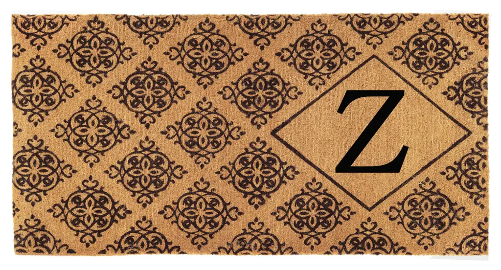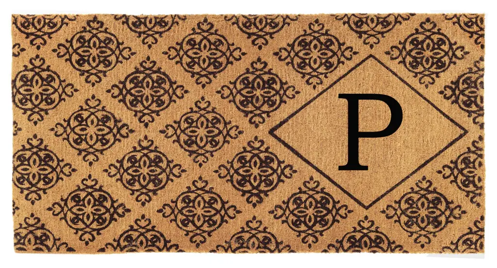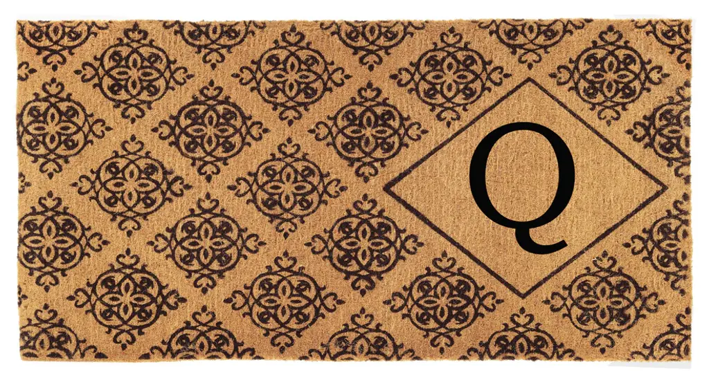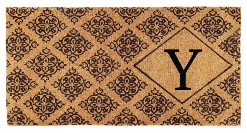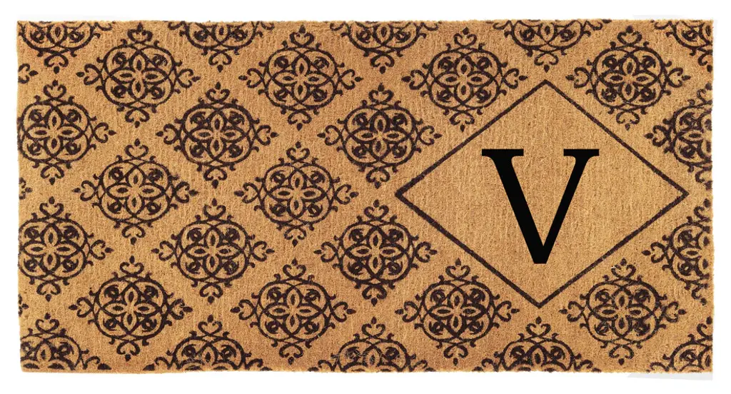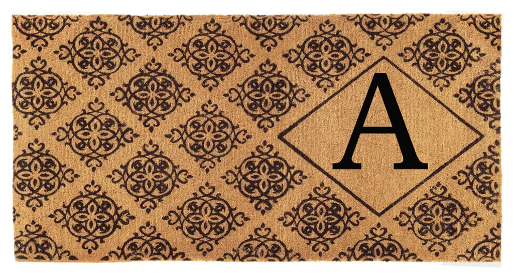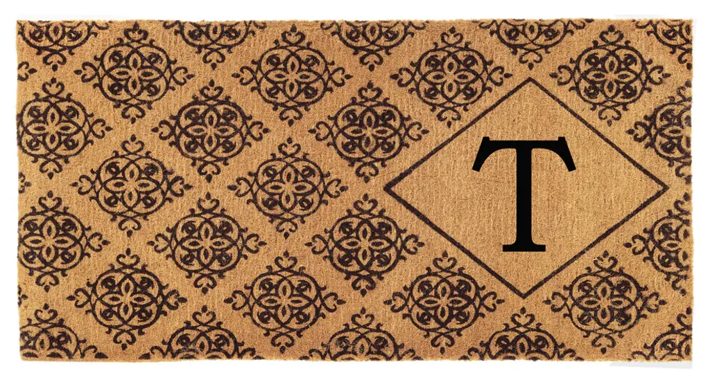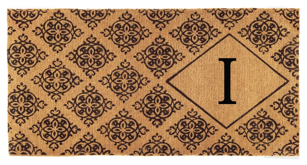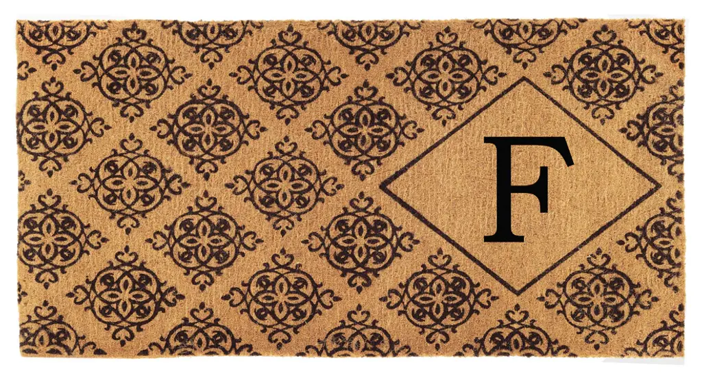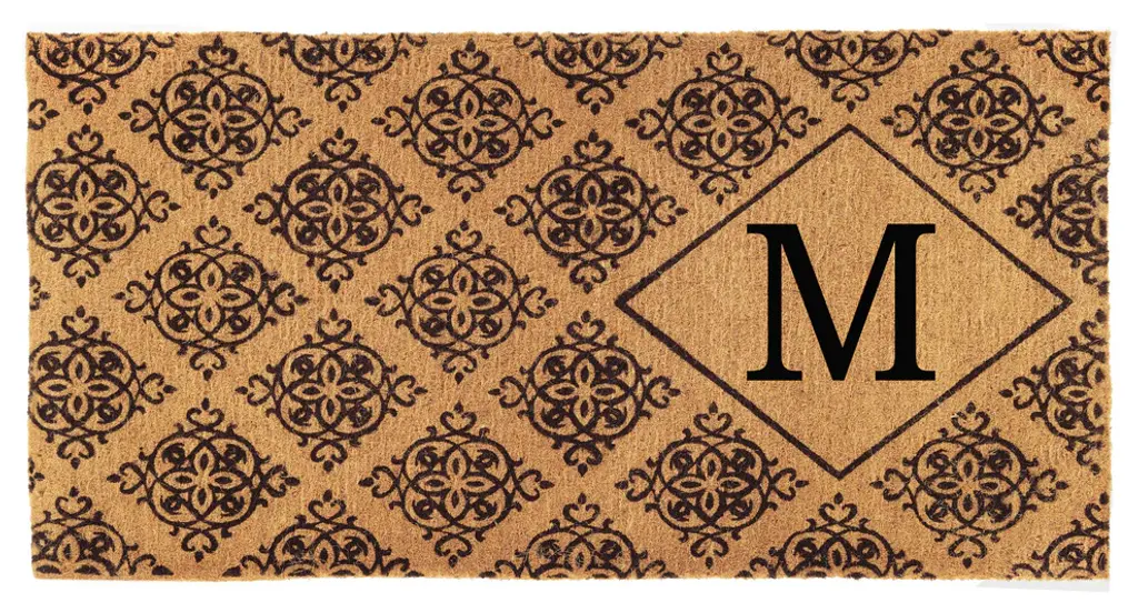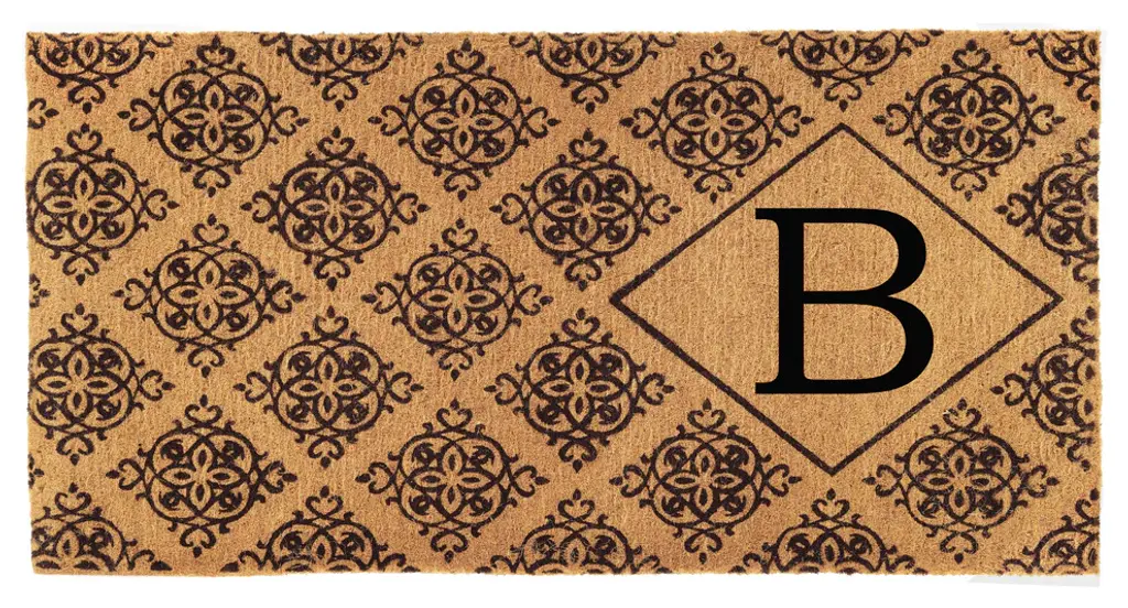 Create a grand entrance with this gorgeous, extra-large, monogrammed doormat that is expertly made by hand. Made of 100% coir, this durable, heavy-duty fiber is earth friendly, naturally abrasive to scrape shoes clean, retains its shape no matter the foot traffic and absorbs moisture. Height is 1.5" -2", vacuum, sweep or lightly hose clean.