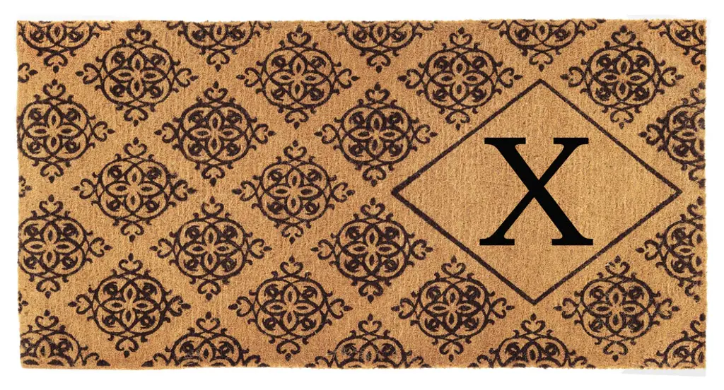 Create a grand entrance with this gorgeous, extra-large, monogrammed doormat that is expertly made by hand. Made of 100% coir, this durable, heavy-duty fiber is earth friendly, naturally abrasive to scrape shoes clean, retains its shape no matter the foot traffic and absorbs moisture. Height is 1.5" -2", vacuum, sweep or lightly hose clean.