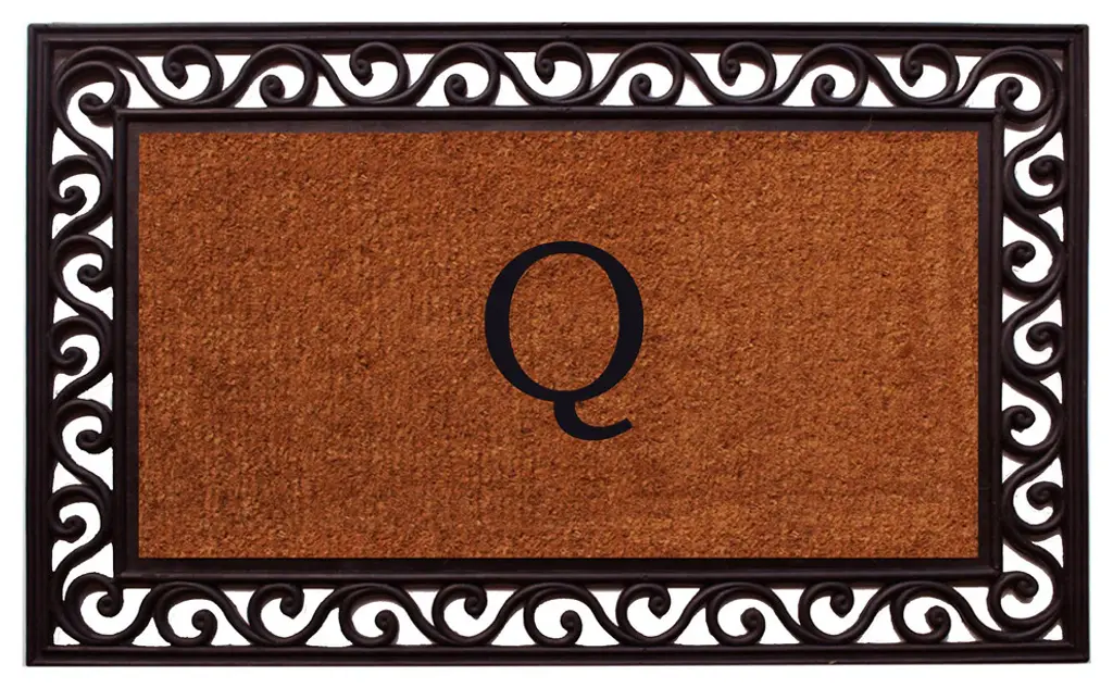 Durable, yet warm and inviting, this monogrammed doormat is a functional addition to any home decor. Made of heavy-duty rubber and natural coir that scrapes shoes clean, this resilient doormat absorbs moisture and stands up to foot traffic. Vacuum, sweep or lightly hose clean and allow to dry.