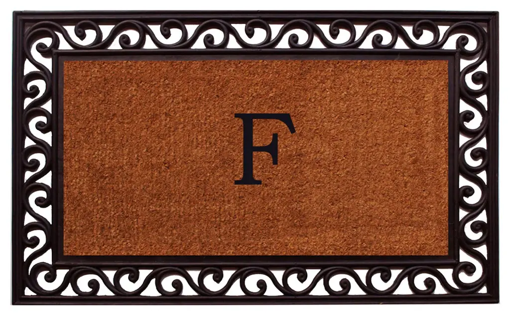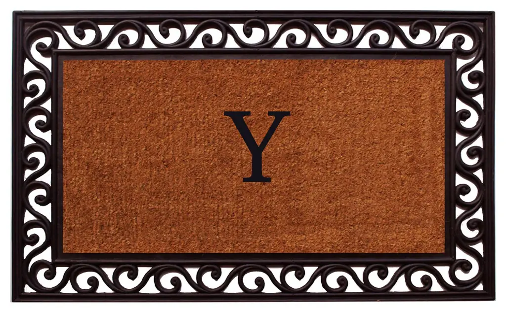 Durable, yet warm and inviting, this monogrammed doormat is a functional addition to any home decor. Made of heavy-duty rubber and natural coir that scrapes shoes clean, this resilient doormat absorbs moisture and stands up to foot traffic. Vacuum, sweep or lightly hose clean and allow to dry.