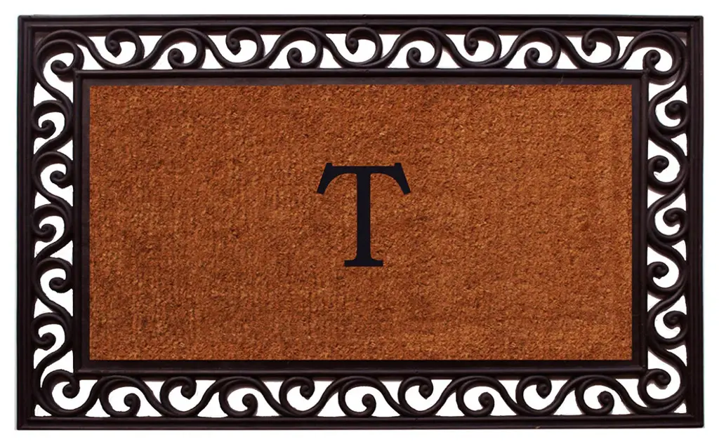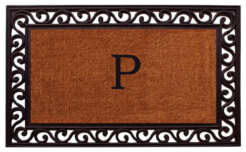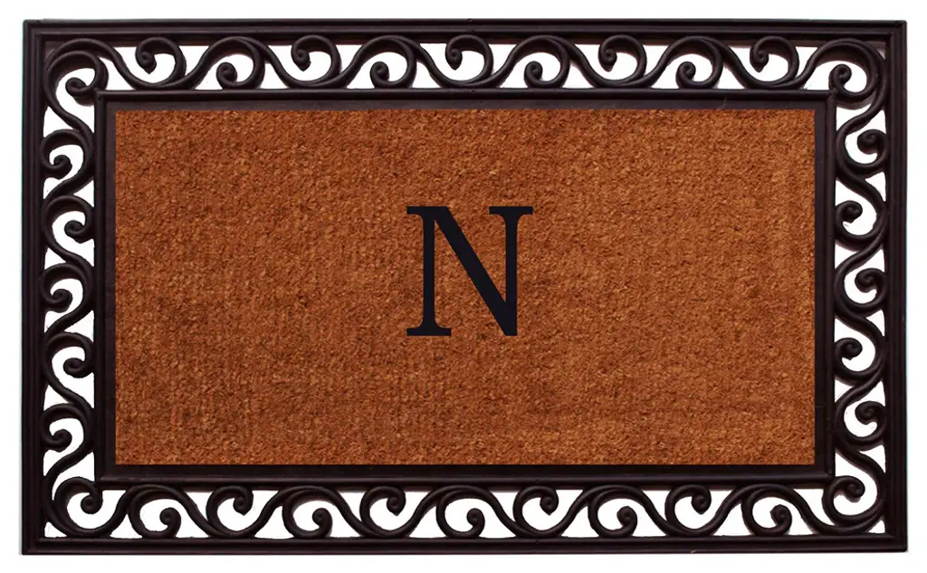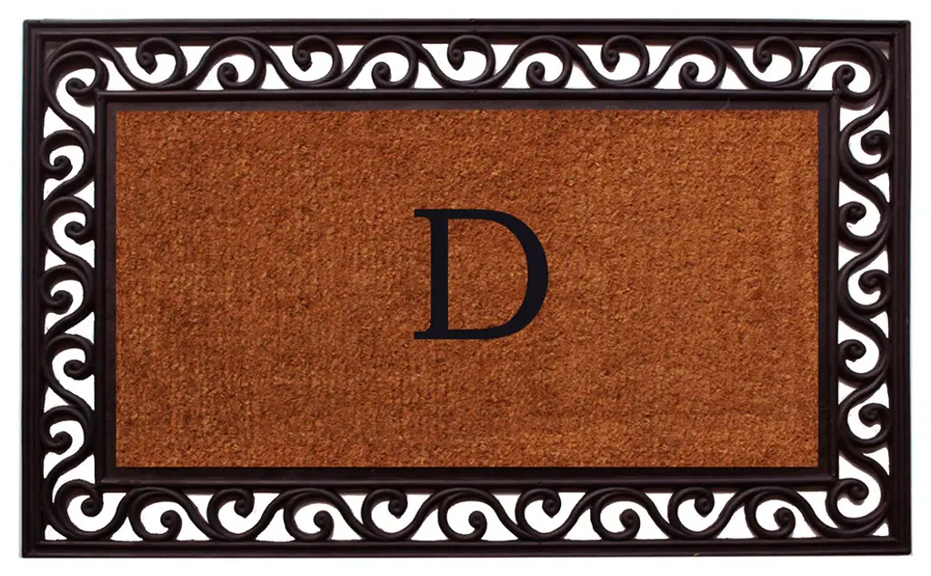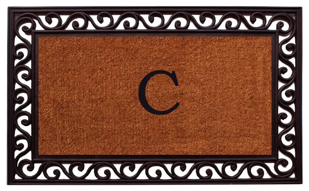 Durable, yet warm and inviting, this monogrammed doormat is a functional addition to any home decor. Made of heavy-duty rubber and natural coir that scrapes shoes clean and absorbs moisture, this larger size also provides more coverage. Vacuum, sweep or lightly hose clean and allow to dry.