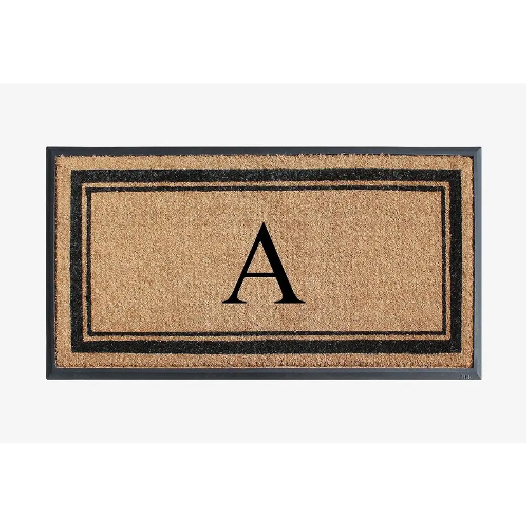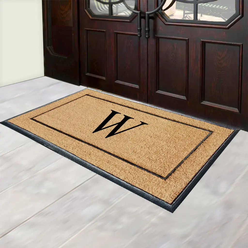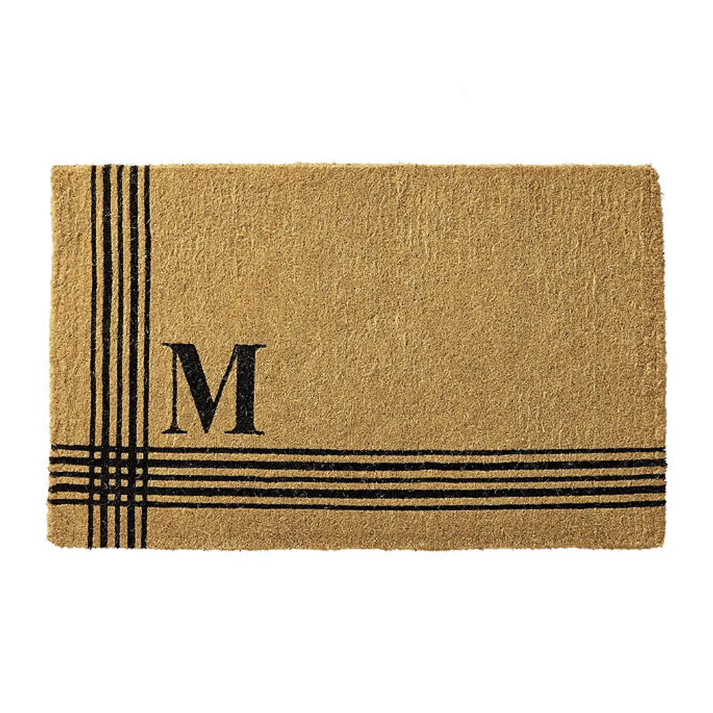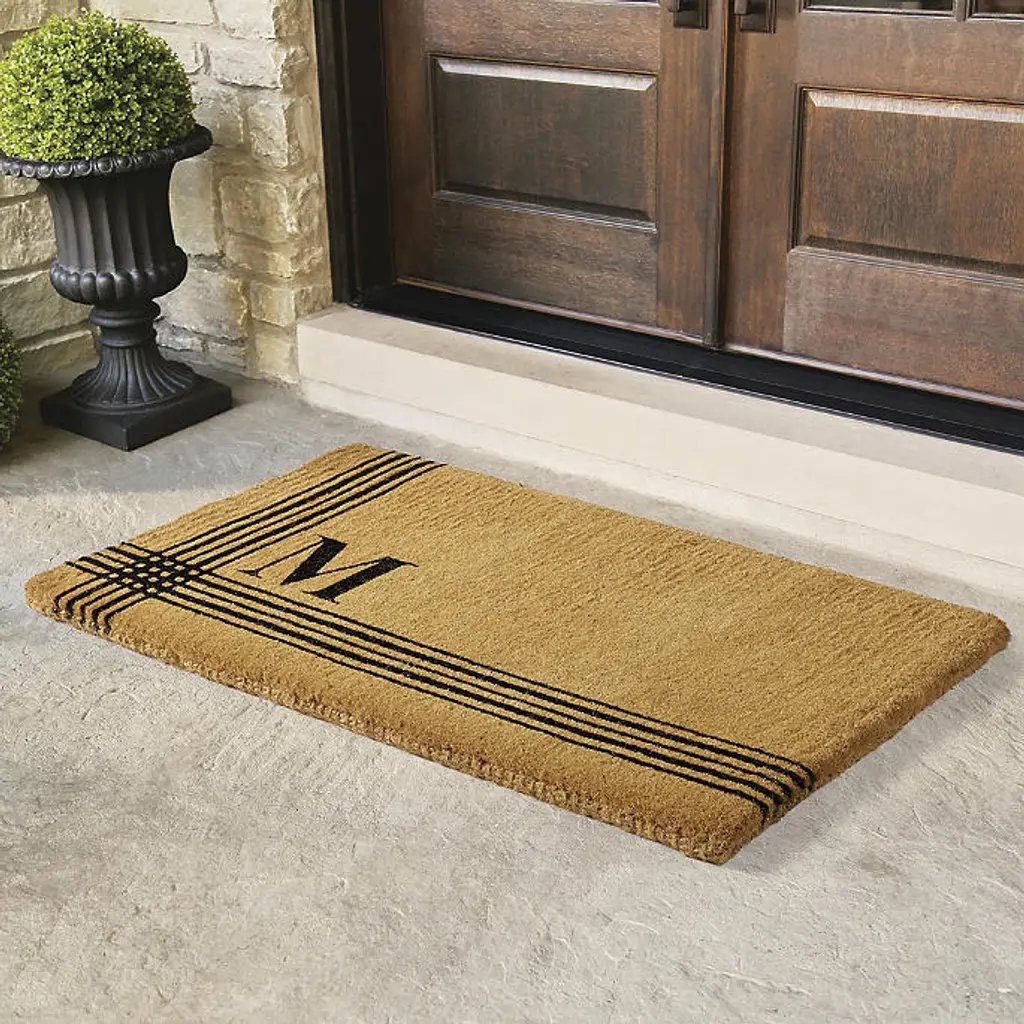 Framed in a sophisticated, black border, this timeless welcome mat features your choice of monogrammed initial. Constructed of 100% durable coir fibers, this door mat graces your entryway with a durable welcome.100% coir1.5" thickColors: Natural with Black accentsTucked edges Add an outdoor rug pad (sold separately) to increase water drainage and prevent slipping Shake mat clean and dry to maintain its best appearanceTo prolong the life of your coir mat’s design, do not place in direct sunlightNot recommended for use on porcelain, natural stone, slate, granite, cobblestone, or limestone porches that have been chemically sealedImportedA Frontgate exclusive. At Frontgate, our primary focus is quality. We guarantee that every product we sell will stand up to the supreme test – our customers' satisfaction. To learn more about our policies, visit our Shipping & Processing, Returns & Exchanges and Warranty & Price Guarantee pages.Framed in a sophisticated, black border, this timeless welcome mat features your choice of monogrammed initial. Constructed of 100% durable coir fibers, this door mat graces your entryway with a durable welcome.100% coir1.5" thickColors: Natural with Black accentsTucked edges Add an outdoor rug pad (sold separately) to increase water drainage and prevent slipping Shake mat clean and dry to maintain its best appearanceTo prolong the life of your coir mat’s design, do not place in direct sunlightNot recommended for use on porcelain, natural stone, slate, granite, cobblestone, or limestone porches that have been chemically sealedImportedA Frontgate exclusive.