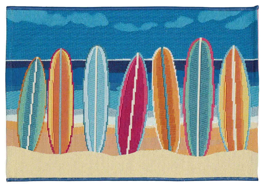 Compliment your entryway with this charming all weather door mat accented with a decorative beach designColor(s): Tan teal fuschia black and hunter greenNon-skid durable backing which helps to keep your door mat securely in placeFor indoor or outdoor useCare instructions: Rinse with hose and air dryDimensions: 17.75"H x 29.75"W x 0.5"DMaterial(s): Coir fiber/rubber bottom