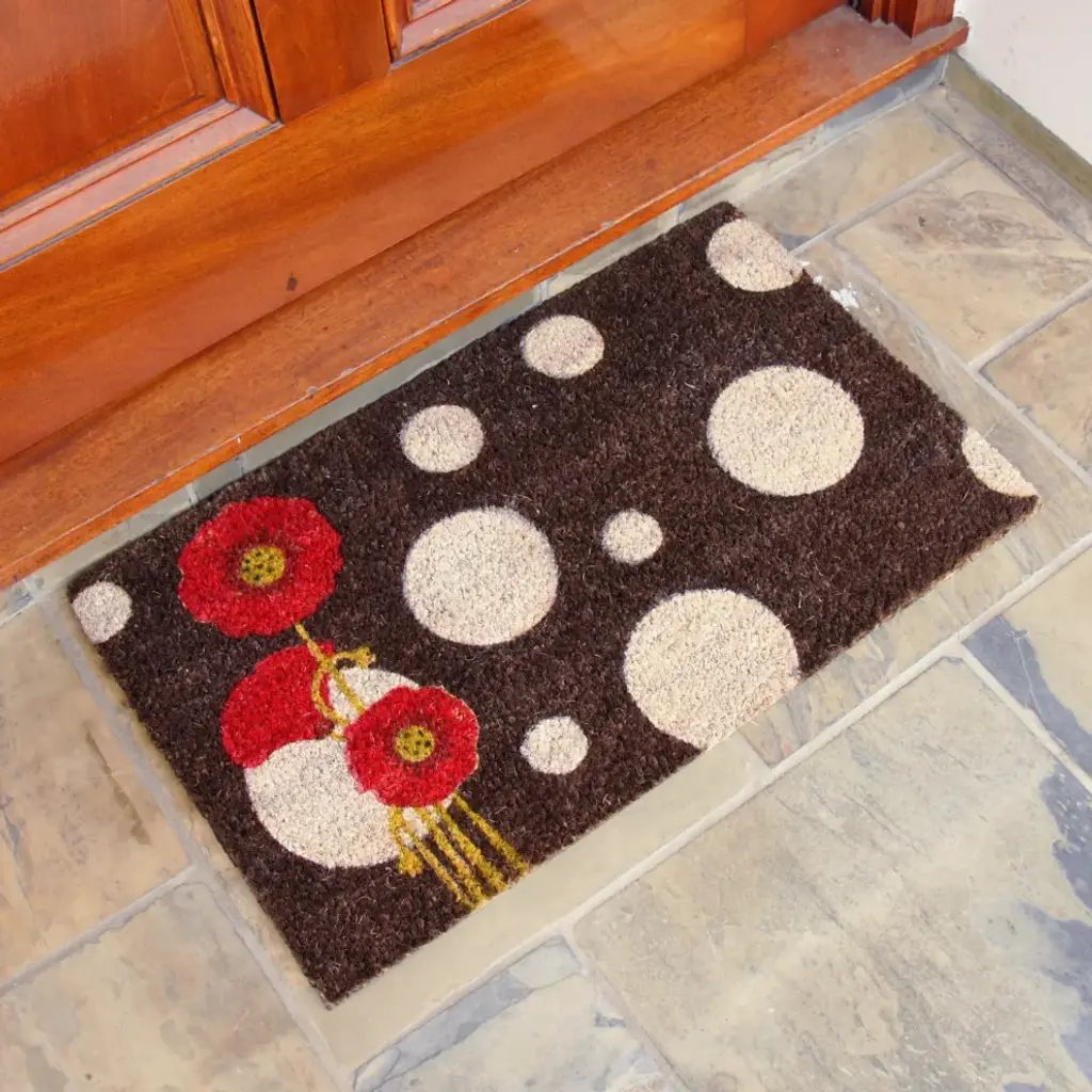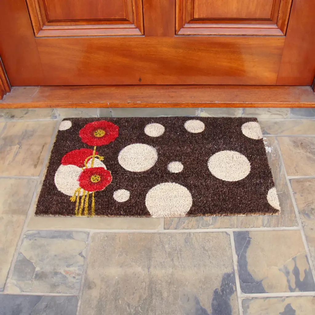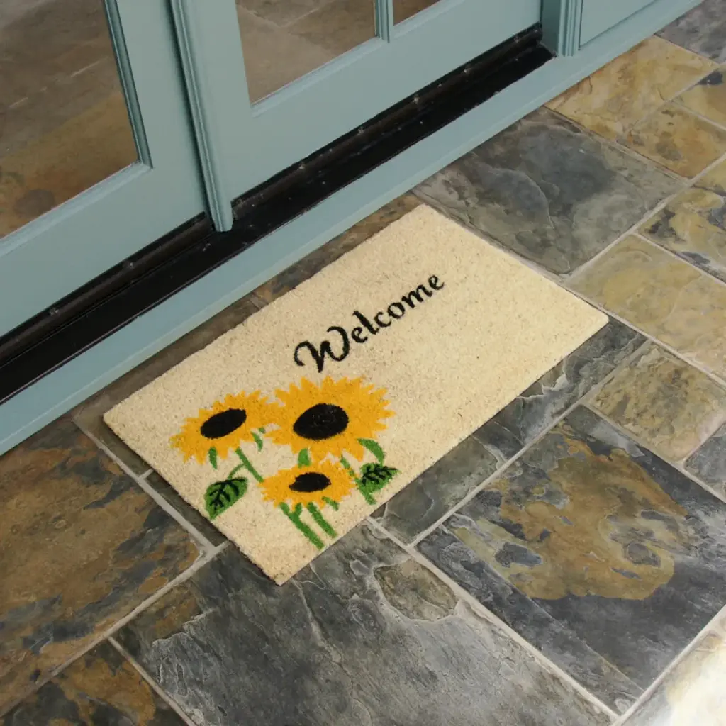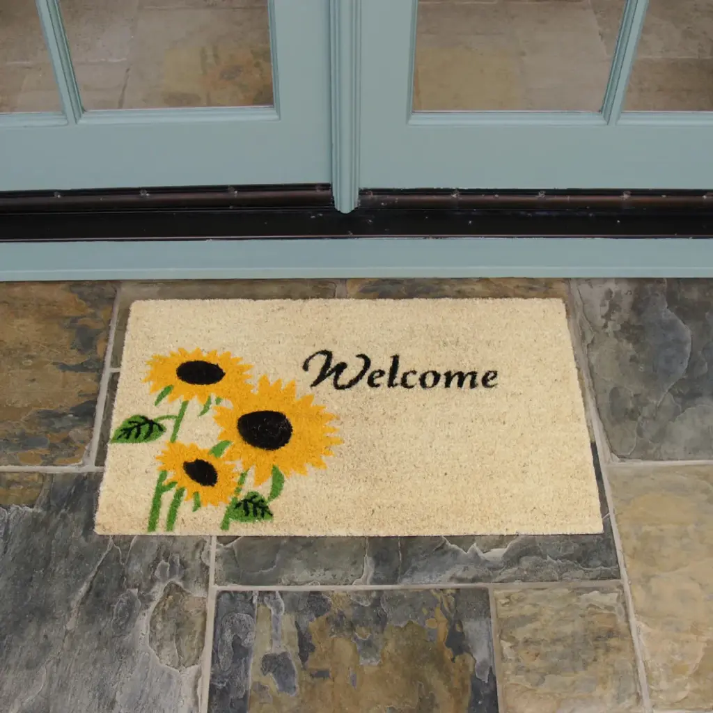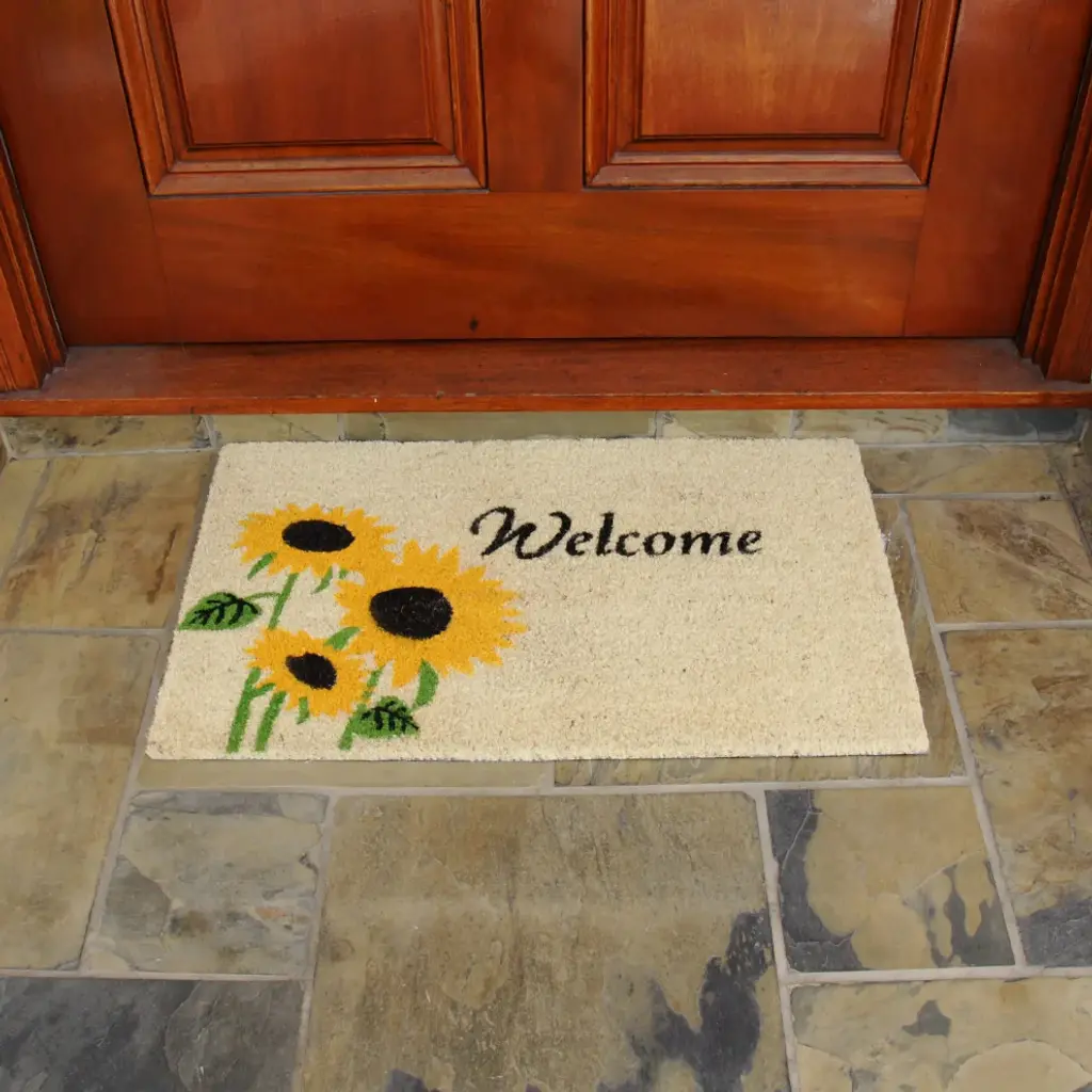 The Rubber-Cal Welcome "Floral Door Mat" Kit is ideal for creating elegant home decor while also working to create a safe and non-slip home atmosphere. Each floral door mat is 18" x 30" making it perfect for any standard sized entryway. This floral door mat pack includes the "Sunflower Welcome Mat", the "Rouge Contemporary Floral Doormat", and the "Red Daisies Field Doormat". With 3 gorgeous floral area rugs, it is easy to interchange styles so that your front door never gets boring! Furthermore, the flower door mat designs, although bright and vivid, will not take away from the home''s original decor or aesthetics, but rather add a minimalistic touch of floral elegance. These outside front door mats are as functional as they are decorative! Each floral door mat is made up of natural coir fibers that help scrape away any unwanted dirt and debris from the hard-to-reach spaces of shoe soles. In addition, coir fibers efficiently absorb moisture that clings onto shoes while also never retaining the moisture allowing it to provide long-lasting functionality and prevent the growth of mold or mildew. Outside front door mats made of coir are able to last indefinitely in the face of harsh environmental factors, such as UV rays, ozone, and oxygen, without worry of deterioration or loss of functionality. Overall, not only will this floral door mat pack make for a beautiful home decor kit, but it will also promote safety in the home by reducing the number of outside particles and moisture from creating slip, trip, and fall hazards.