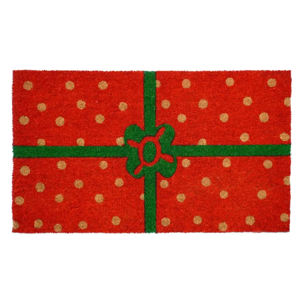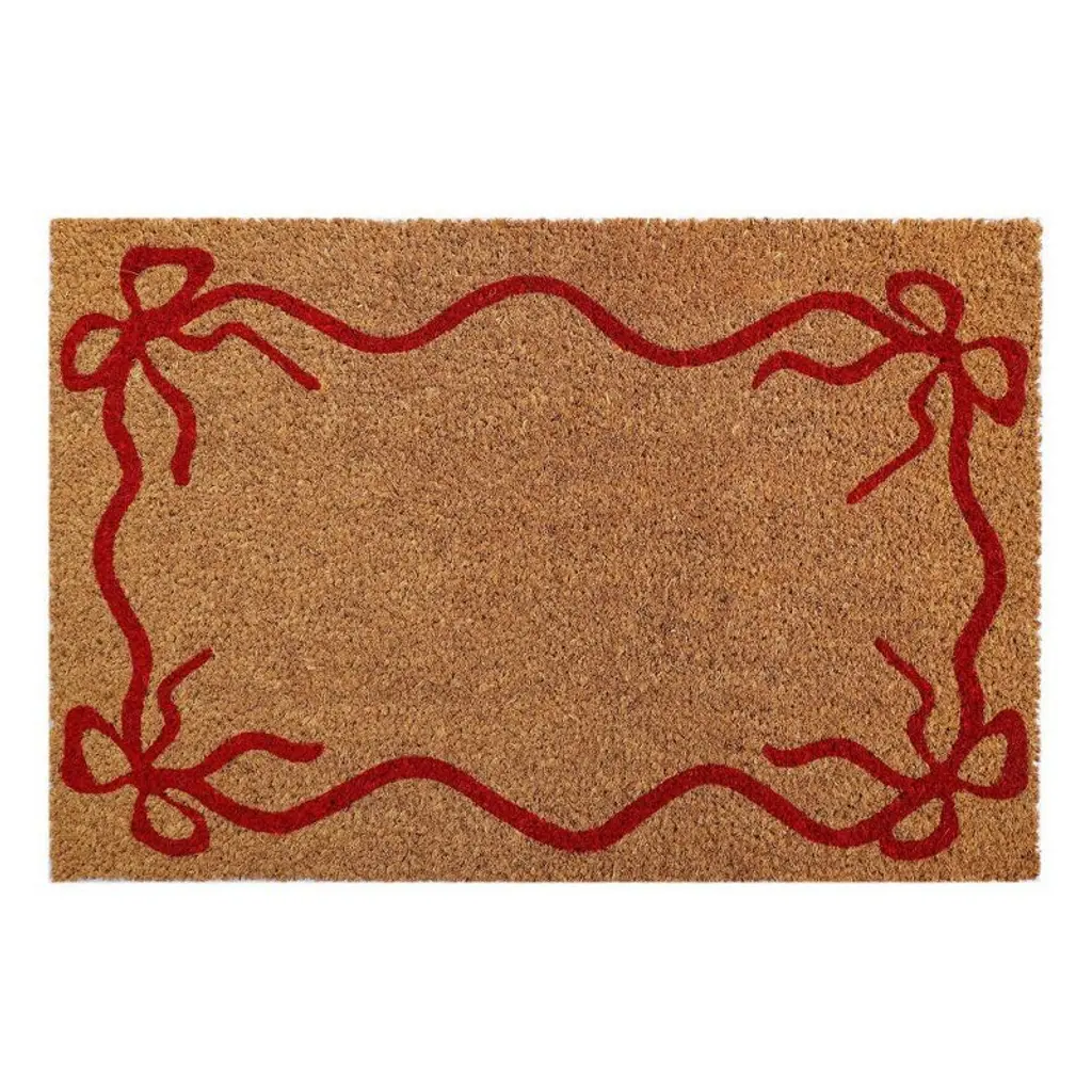 weeten up your doorstep with the Candy Cane Doormat—a festive welcome for the holiday season! Featuring two classic red-and-white candy canes tied together with a pretty pink bow, this charming design is a whimsical nod to all things merry and bright. Crafted from durable coir, it’s built to handle snowy boots and messy shoes while keeping your entryway looking cute. Perfect for adding a pop of feminine cheer to your porch, hallway, or mudroom.