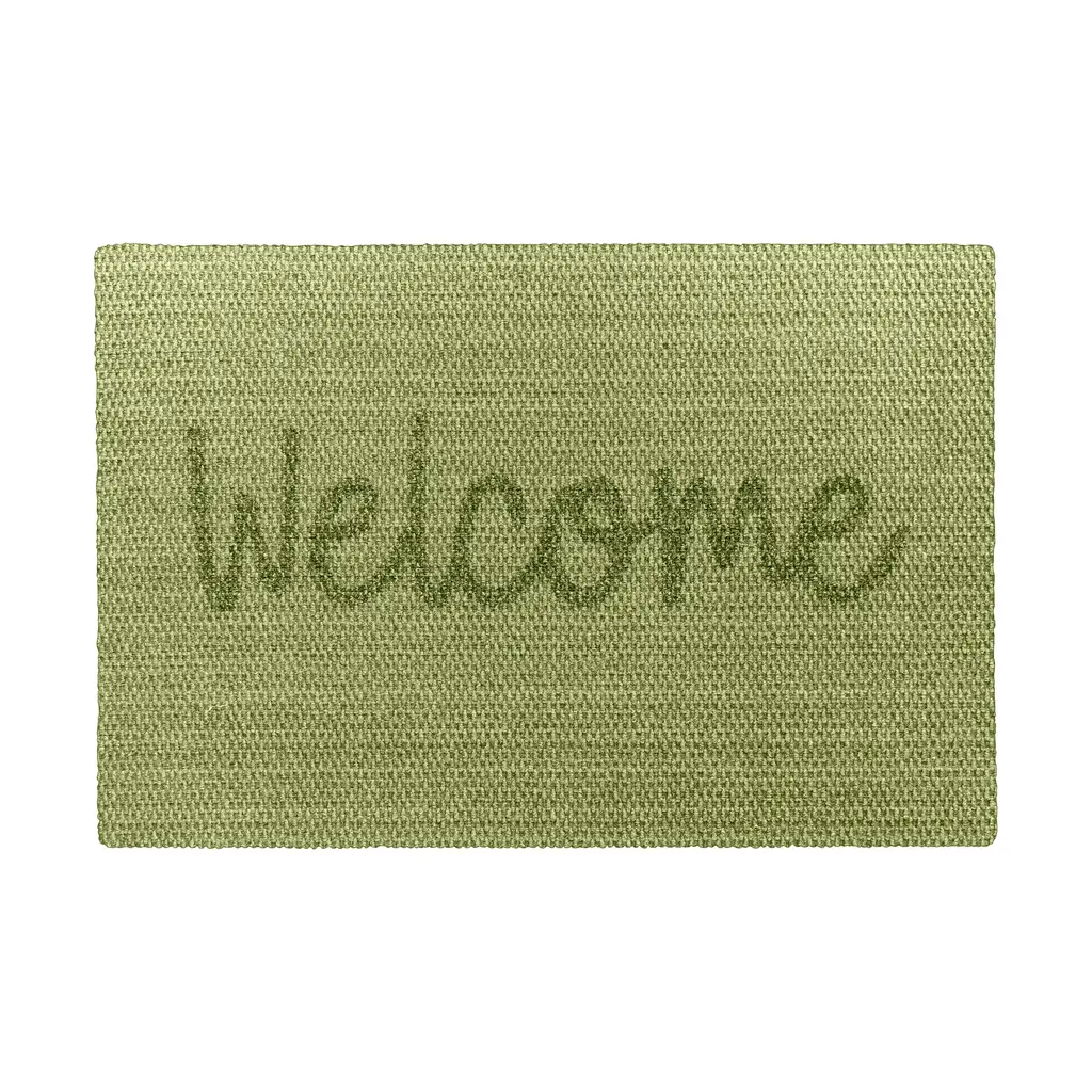 Made of commercial-grade materials, this Sisal-Look Welcome Doormat won’t shed, fade, mildew or slip. This doormat has the look of sisal without shedding or rotting. It's ideal for any covered doorway or entry area. A casual script "Welcome" message offers a friendly greeting to visitors at your front door. Easy care; just shake, vacuum or hose off. You’ll love the upbeat colors and the eco-friendly construction made with recycled plastic and rubber. Low ¼" pile lays flat, fits under doors. Size is approximate. Made in USA.