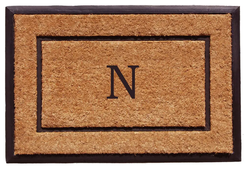 Durable, yet warm and inviting, this monogrammed doormat is a functional addition to any home decor. Made of heavy-duty rubber and natural coir that scrapes shoes clean, this resilient doormat absorbs moisture and stands up to foot traffic. Vacuum, sweep or lightly hose clean and allow to dry.