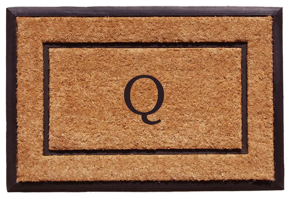 Durable, yet warm and inviting, this monogrammed doormat is a functional addition to any home decor. Made of heavy-duty rubber and natural coir that scrapes shoes clean, this resilient doormat absorbs moisture and stands up to foot traffic. Vacuum, sweep or lightly hose clean and allow to dry.