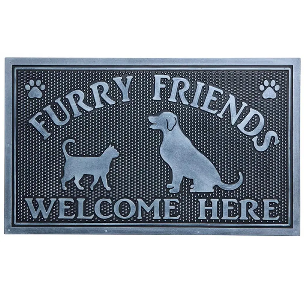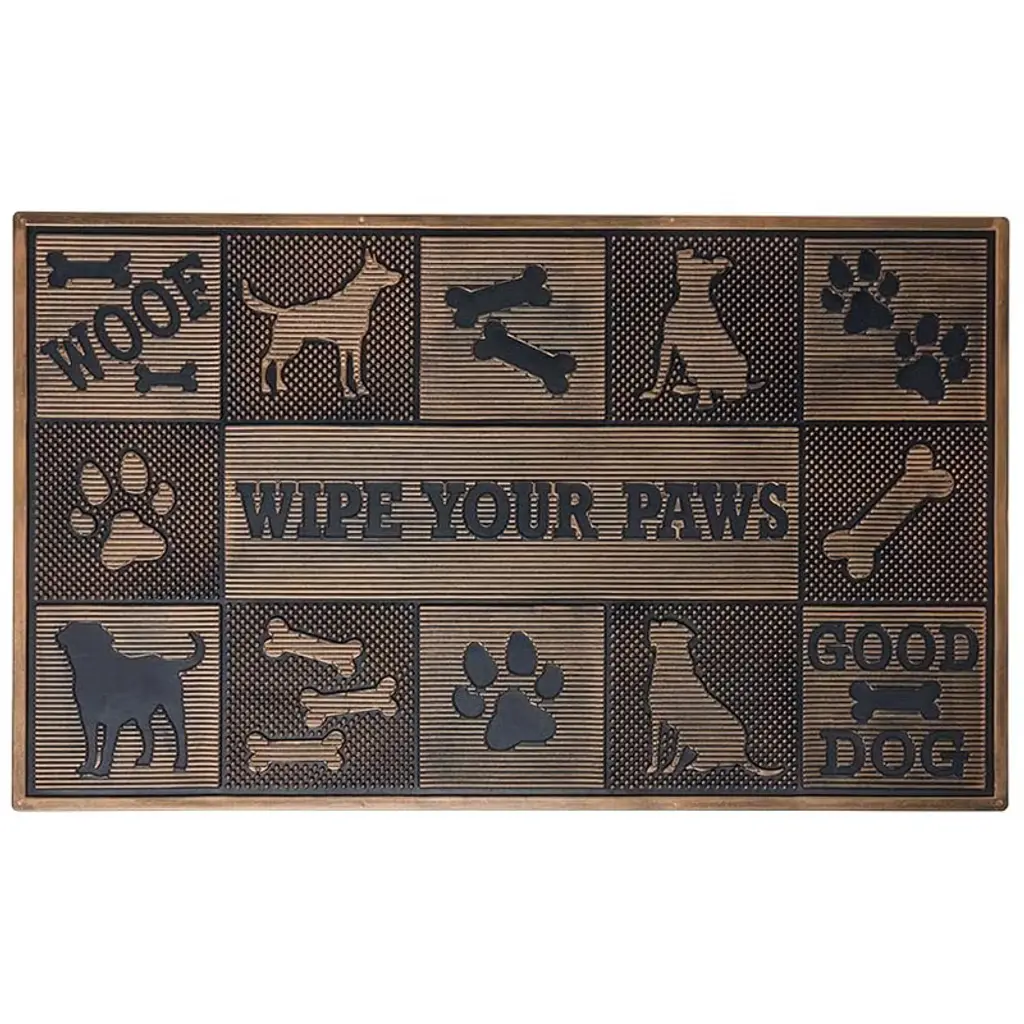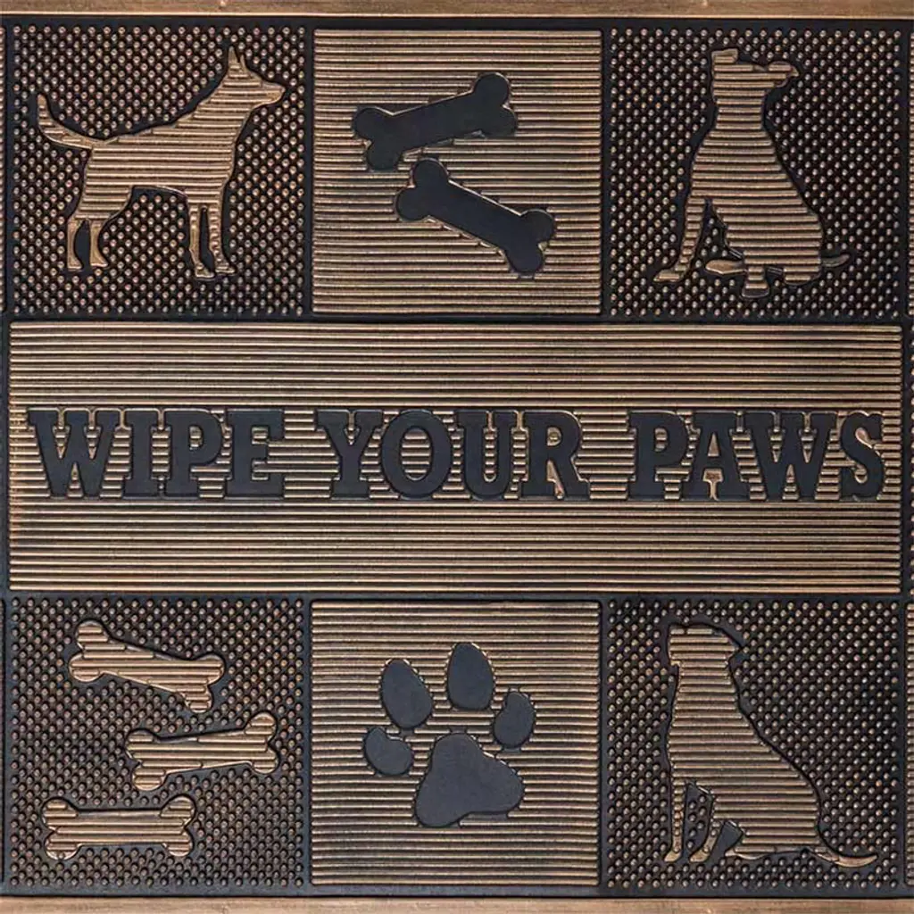 Add charm to your doorstep with the Woof Wipe Your Paws Rubber Doormat. This delightful mat not only welcomes guests with a playful message but also serves as a practical solution for keeping dirt and grime at bay. Its anti-skid back ensures it stays firmly in place, giving you peace of mind as you and your visitors wipe away. The antique gold finish adds a touch of sophistication, effortlessly blending with any decor while withstanding outdoor elements. Perfectly designed for both style and function, it's an inviting gateway into your home that promises cleanliness without compromising on charm. Don't miss out on this blend of elegance and utility—ideal for any pet lover ready to make a statement!Key FeaturesPlayful "Wipe Your Paws" messageAnti-skid backing for stabilityAntique gold finish for a touch of eleganceDurable for indoor and outdoor useEasy to clean and maintain. Made of: Rubber Measurements: 30"W x 18"L