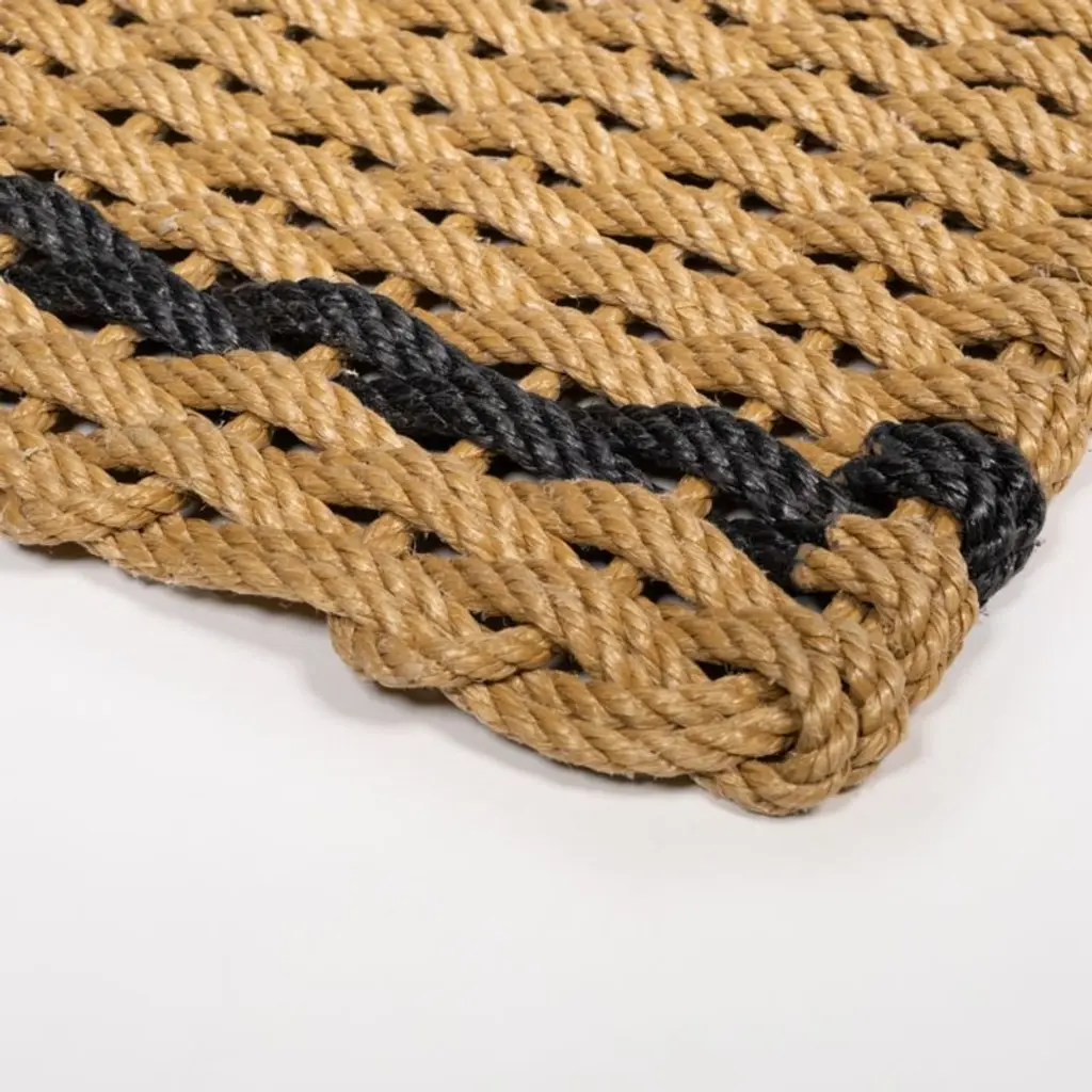 Handwoven out of handmade rope in Maine, this offset striped doormat weathers all seasons and conditions. The mat brings home the durability of rugged, fishing-grade nautical rope to your front door. Crafted with a chunky basketweave with two charcoal stripes, the doormat looks classic and sophisticated yet offers exceptional performance by effectively removing dirt from muddy shoes, repelling water and resisting mold and mildew.The Rope Co. of Maine quality doormats and baskets that add lasting function and style to your home. Made with heritage and heart, the products are inspired by the region's local stories and natural landscapes.