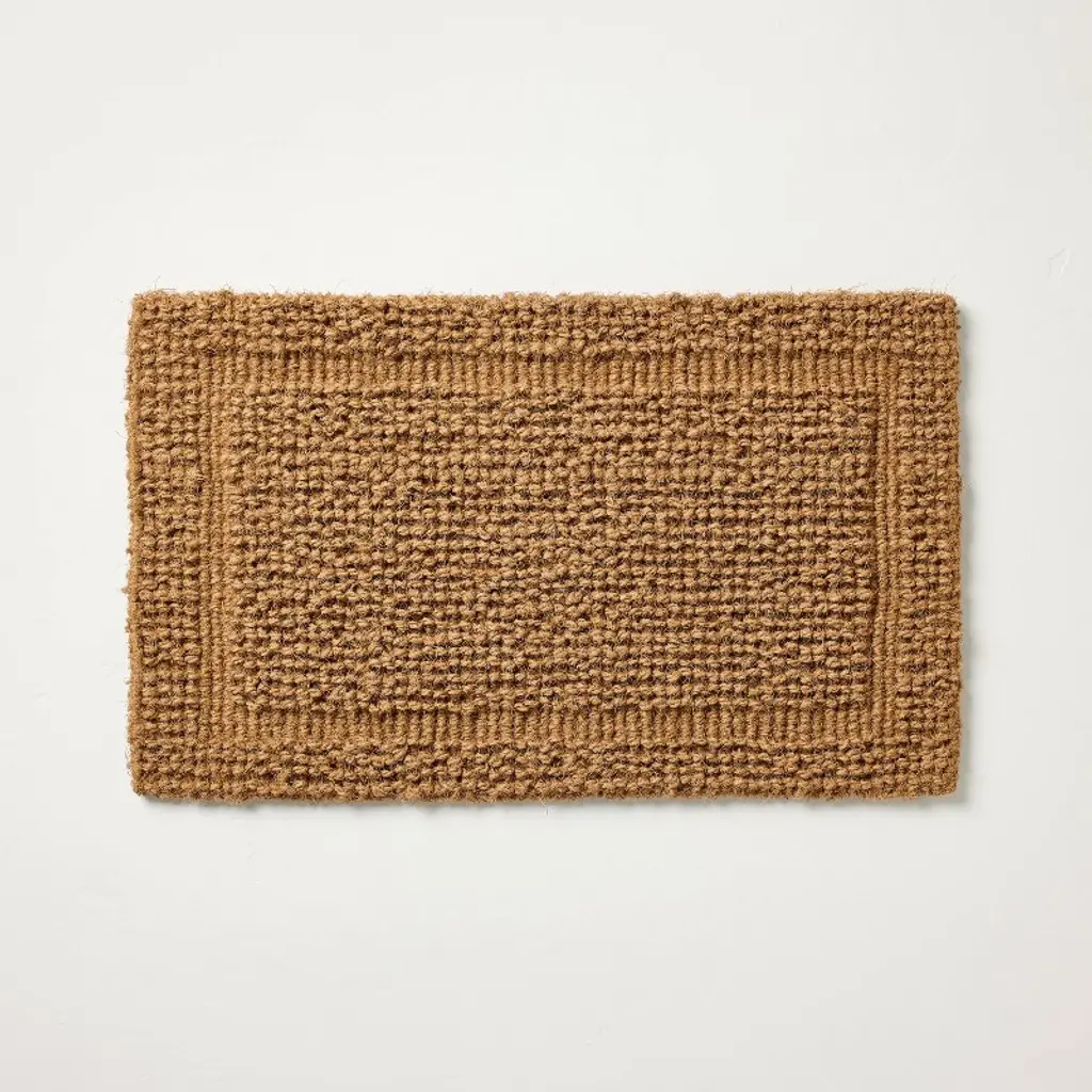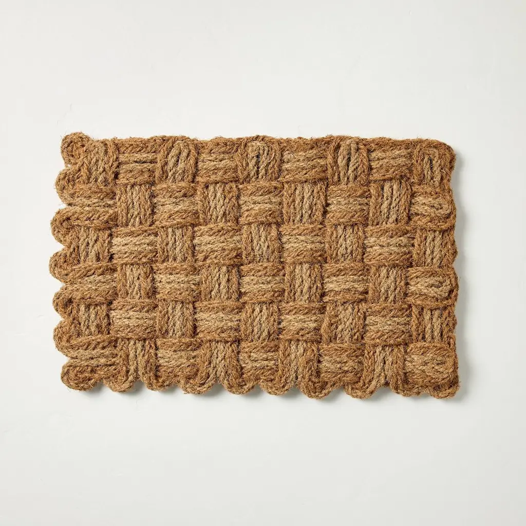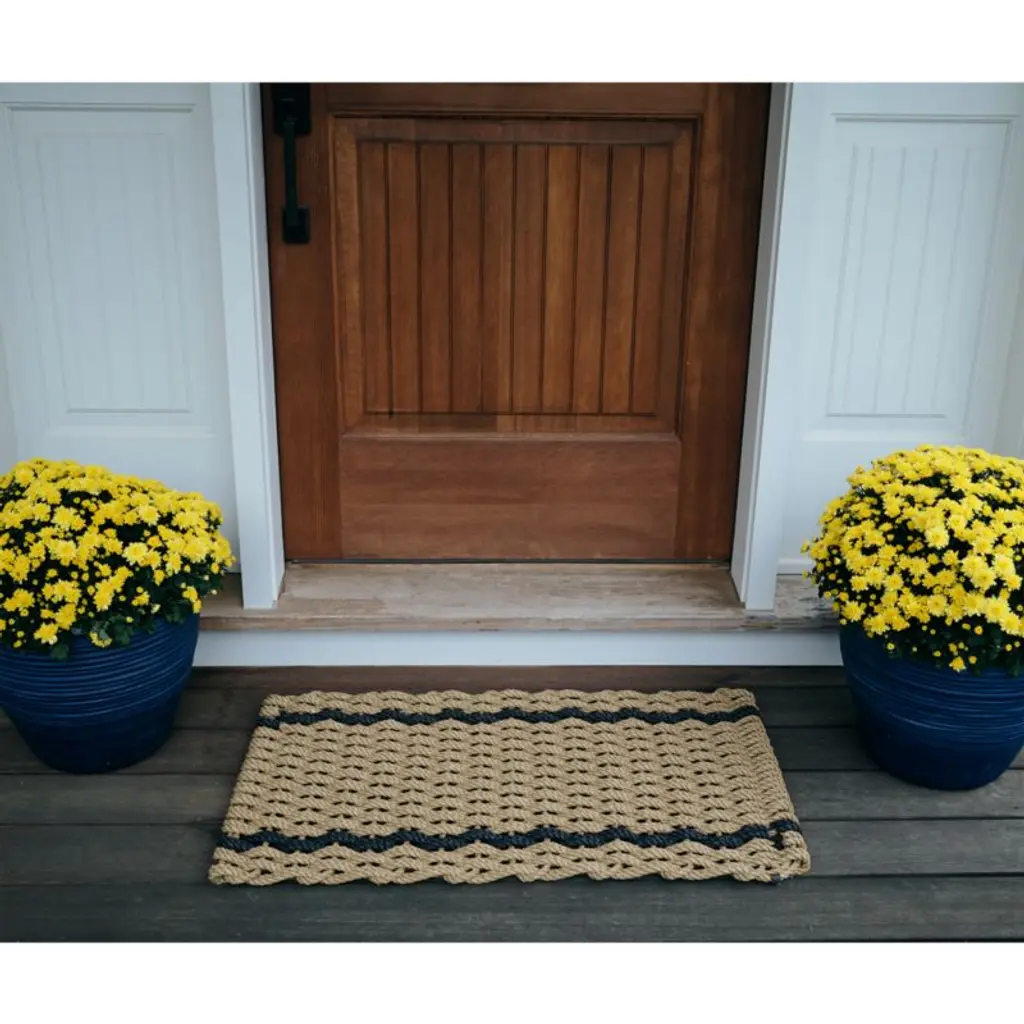 Handwoven out of handmade rope in Maine, this offset striped doormat weathers all seasons and conditions. The mat brings home the durability of rugged, fishing-grade nautical rope to your front door. Crafted with a chunky basketweave with two charcoal stripes, the doormat looks classic and sophisticated yet offers exceptional performance by effectively removing dirt from muddy shoes, repelling water and resisting mold and mildew.The Rope Co. of Maine quality doormats and baskets that add lasting function and style to your home. Made with heritage and heart, the products are inspired by the region's local stories and natural landscapes.