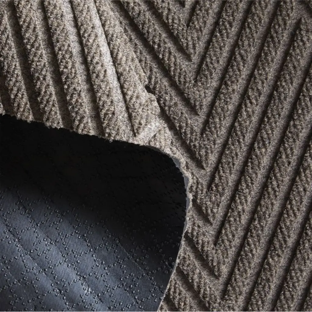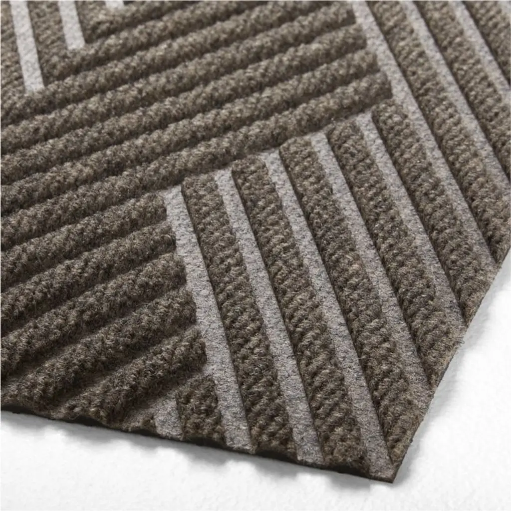 Add an attractive and practical welcome to your home with this graphic doormat. Featuring a dynamic and dimensional angular design, the monochromatic taupe brown mat is finished with rubber backing and keeps a low profile under opening and closing doors. The Arrows doormat stands up to high traffic indoors and out, resisting staining and slipping.
