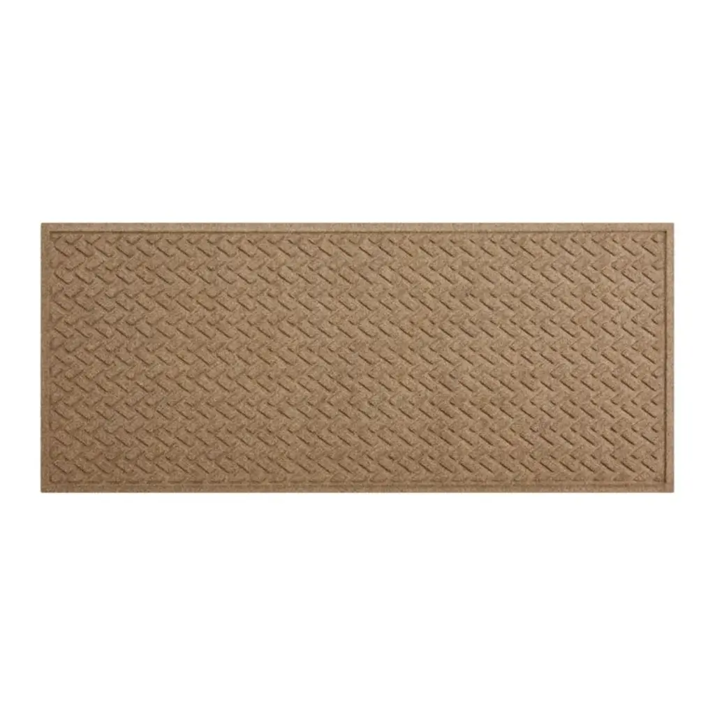 This absorbent "thirsty" mat in a great shade of flax lives up to its name, indoors or out. Unique construction wicks away moisture, trapping it in the pile for quick evaporation before floors, doorways or mudrooms get slick and dirty. Featuring a fun carved dash design, this long-lasting mat is finished with secure, non-skid rubber backing, keeps a low profile under opening and closing doors, and won't fade, crack, mold or mildew.