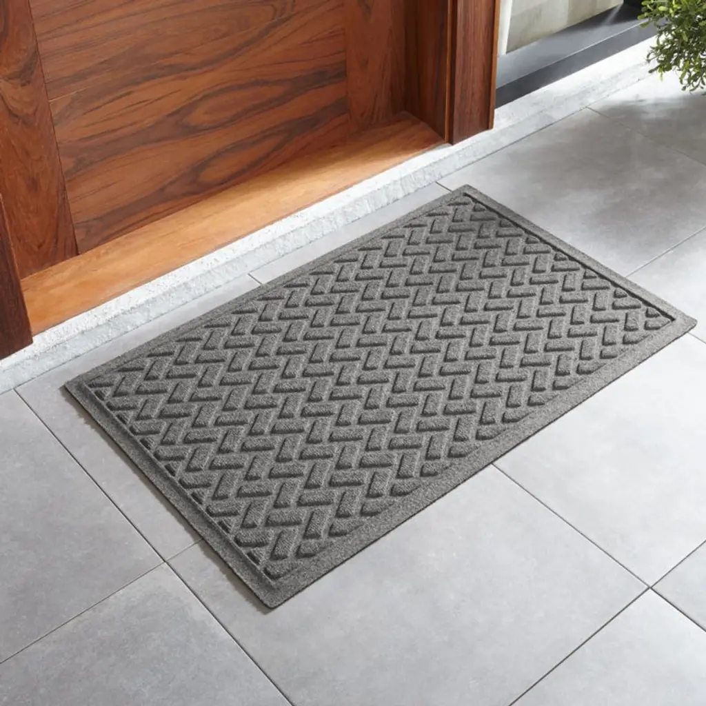 This absorbent "thirsty" mat in a great shade of light grey lives up to its name, indoors or out. Unique construction wicks away moisture, trapping it in the pile for quick evaporation before floors, doorways or mudrooms get slick and dirty. Featuring a fun carved dash design, this long-lasting mat is finished with secure, non-skid rubber backing, keeps a low profile under opening and closing doors, and won't fade, crack, mold or mildew.
