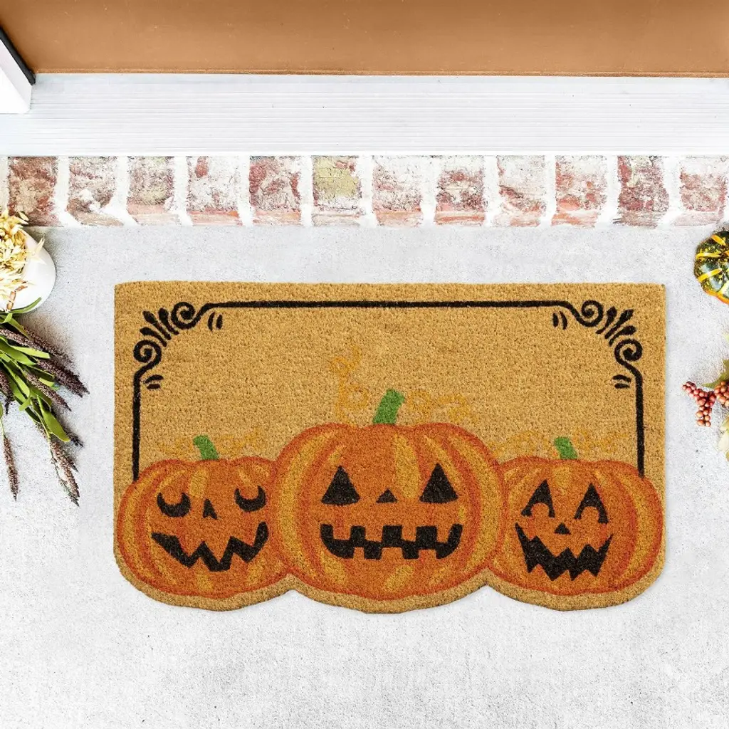 Vcny 1'6"x2'6" Three Pumpkins Halloween Outdoor Coir Doormat