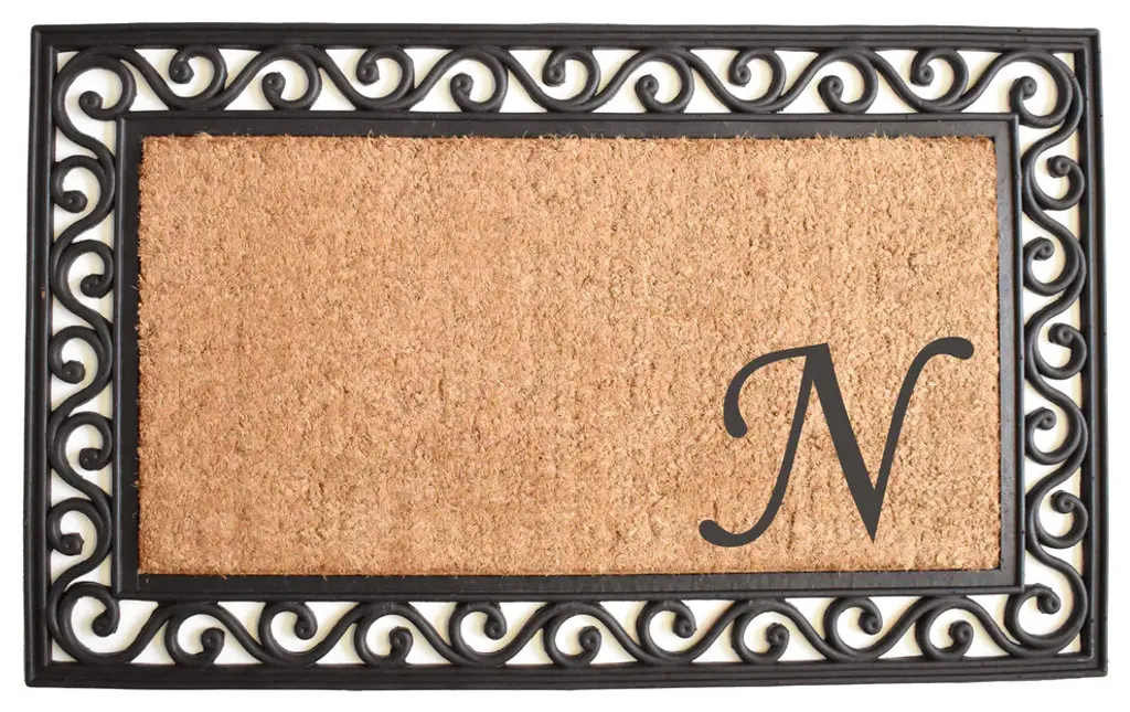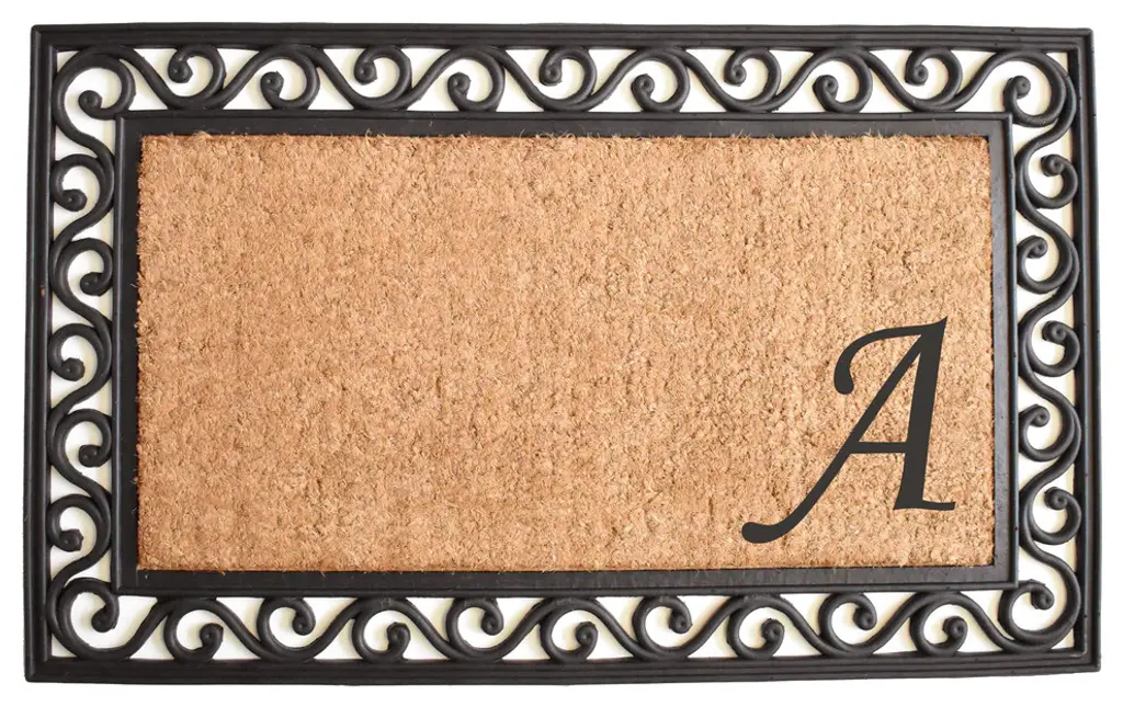 Durable, yet warm and inviting, this monogrammed doormat is a functional addition to any home decor. Made of heavy-duty rubber and natural coir that scrapes shoes clean and absorbs moisture, this beautiful doormat is exceptionally sturdy and stands up to traffic. For best results keep in a sheltered area such as a covered porch, keeping extreme moisture and sunlight to a minimum. Vacuum, sweep or lightly hose clean.