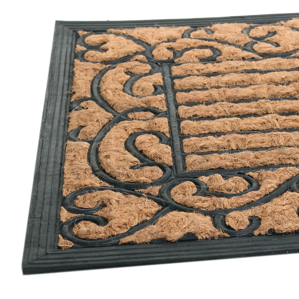 These mats are crafted using a combination of handwoven coir and recycled vulcanized rubber, offering elegance and affordability. Available in a variety of designs, they are perfect for enhancing any home. The rubber backing ensures they are skid-free, making them durable and ideal for heavy use.