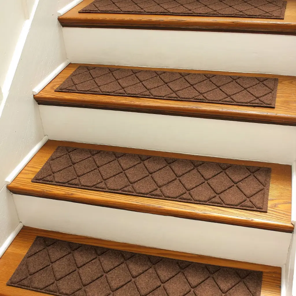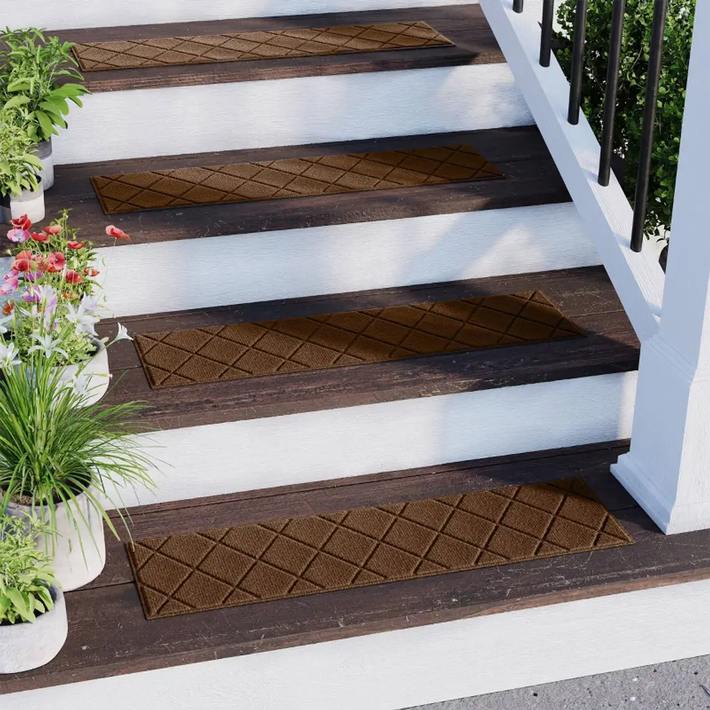 Waterhog 8.5"x30" Set Of 4 Argyle Indoor/outdoor Stair Treads Door Mats Dark Brown