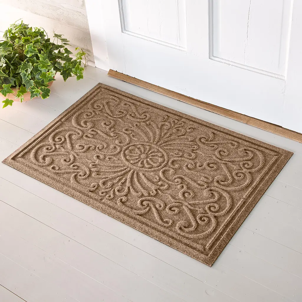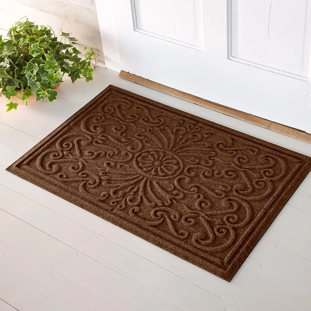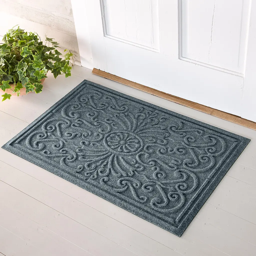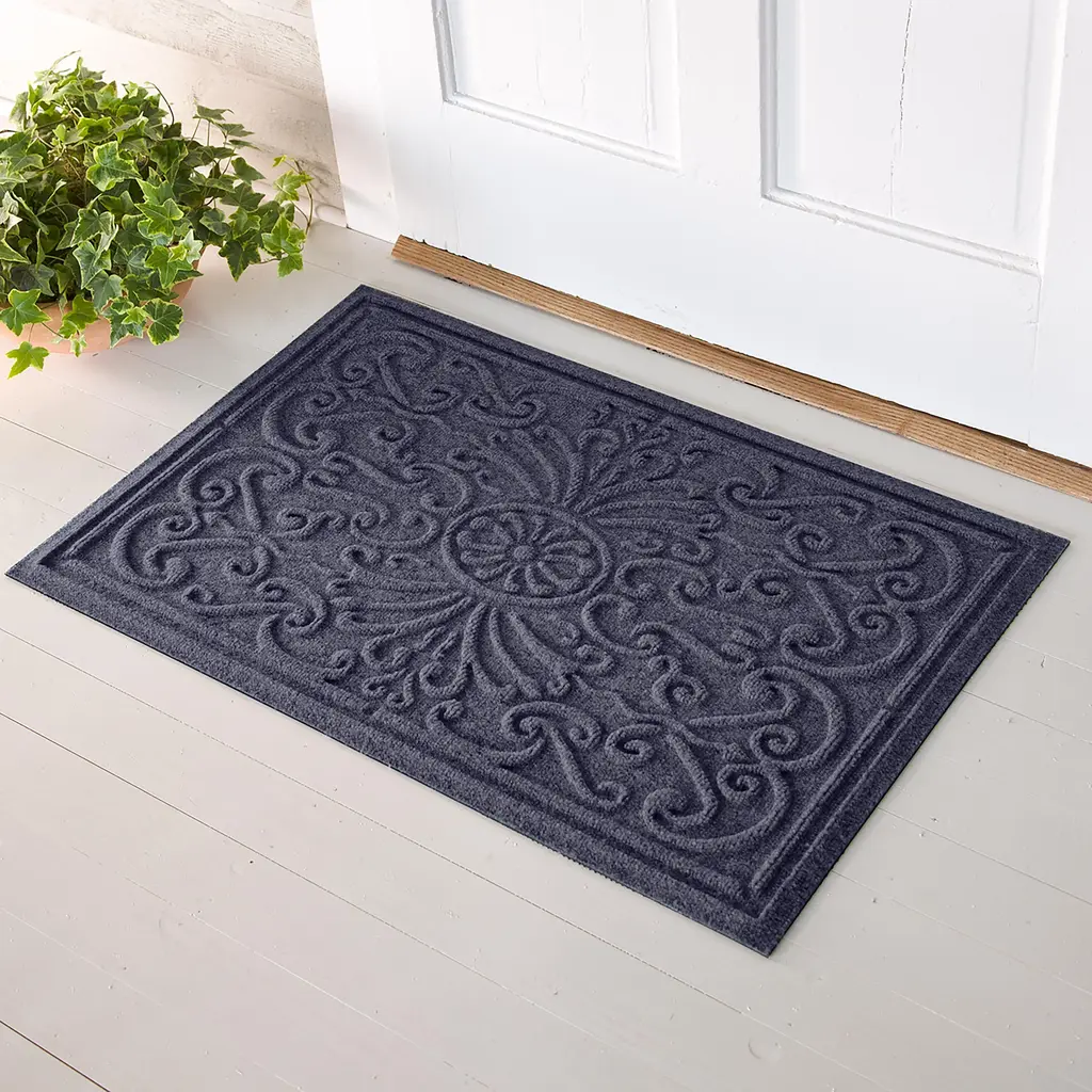 Our dependable, reliable Waterhogs Doormats are better than ever! These commercial-grade Garden Gate Waterhogs offer the same high-level of performance, durability and effectiveness you've come to depend on with a more eco-friendly construction. Waterhog Mats now feature a super-durable, PET fabric face made from 100% recycled post-consumer plastic bottles. Depending upon the size, each Waterhog can contain 10-30 recycled bottles that otherwise may have been destined for a landfill. The bi-level surface grabs onto and soaks up moisture, dirt, leaves and more to keep floors clean and dry. Plus, the unique water dam design holds up to 1½ gallons of water per square yard. Super-durable Waterhog Mats are anti-static, quick-drying and they won't fade or rot. Just vacuum or hose down to clean - easy! The hefty rubber backing has 20% recycled content and stays in place. Certified Slip-Resistant by the NFSI (National Floor Safety Institute). Exceeds requirements for FF2-70-Standard for surface flammability of small carpets. Sizes are approximate. Made in USA.
