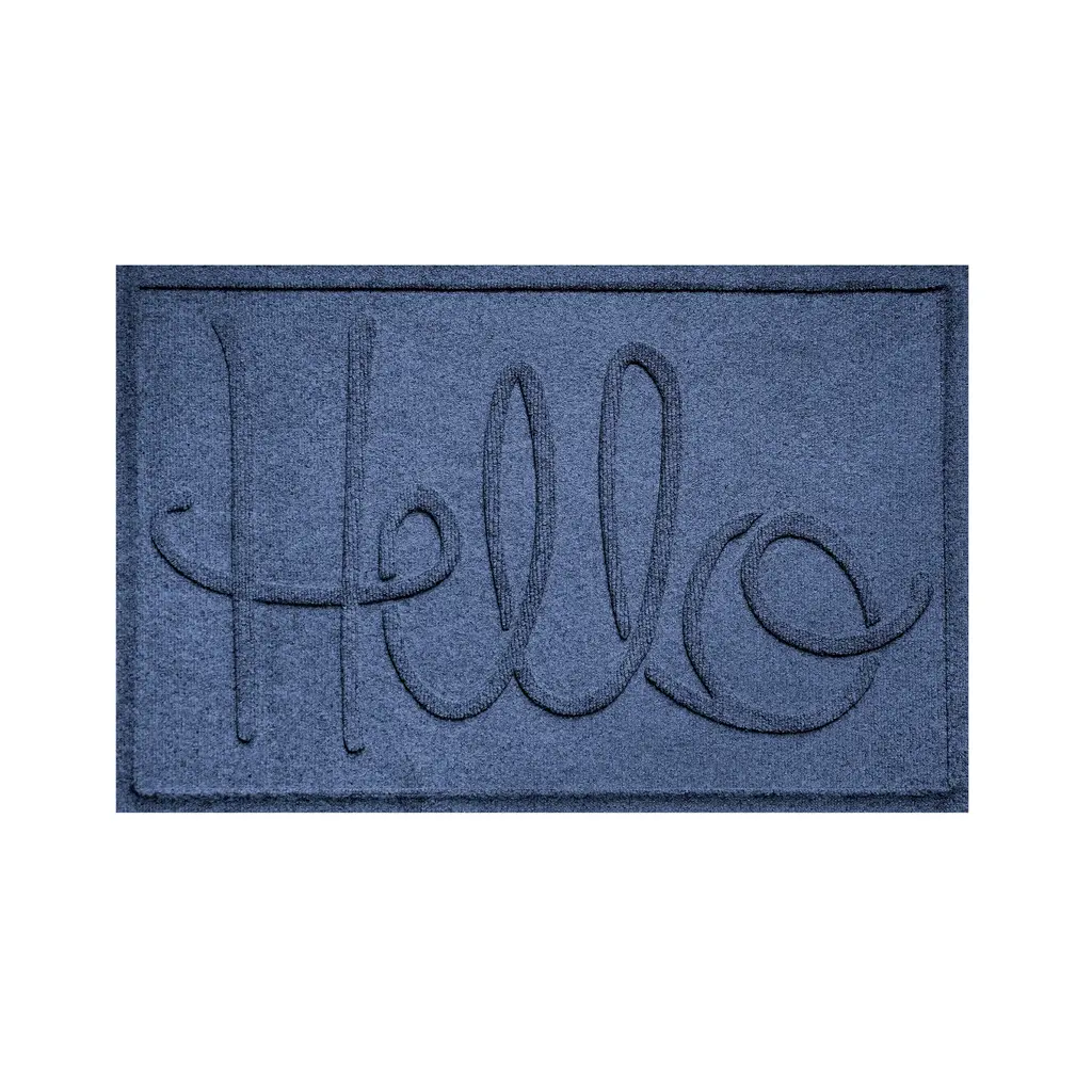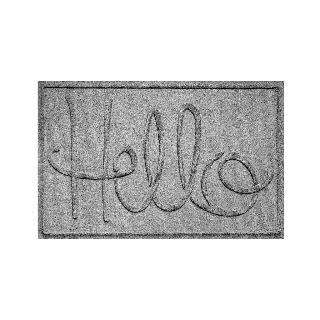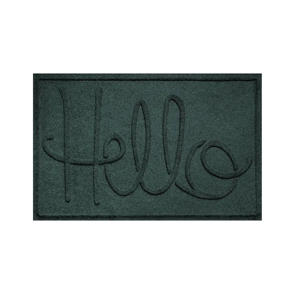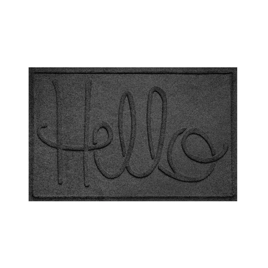 Our dependable, reliable Hello Doormat combines practical use with great design. Commercial-grade Waterhog rugs offer high-level of performance, durability and effectiveness along with eco-friendly construction. The numerous color options and the welcoming script message of greeting ensure that this mat will blend with just about any decorative style. Waterhog Mats feature a super-durable, PET fabric face made from 100% recycled post-consumer plastic bottles. Each Waterhog door mat can contain 10 or more recycled bottles that otherwise may have been destined for a landfill. The bi-level surface grabs onto and soaks up moisture, dirt, leaves and more to keep floors clean and dry. Plus, the unique water dam design holds up to 1½ gallons of water per square yard. Super-durable Waterhogs are anti-static, quick-drying and they won't fade or rot. Just vacuum or hose down to clean - easy! The hefty rubber backing has 20% recycled content and stays in place. Certified Slip-Resistant by the NFSI (National Floor Safety Institute). Exceeds requirements for FF2-70-Standard for surface flammability of small carpets. Sizes are approximate. Made in USA.