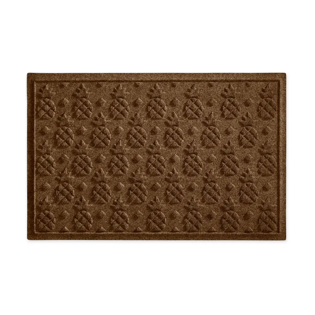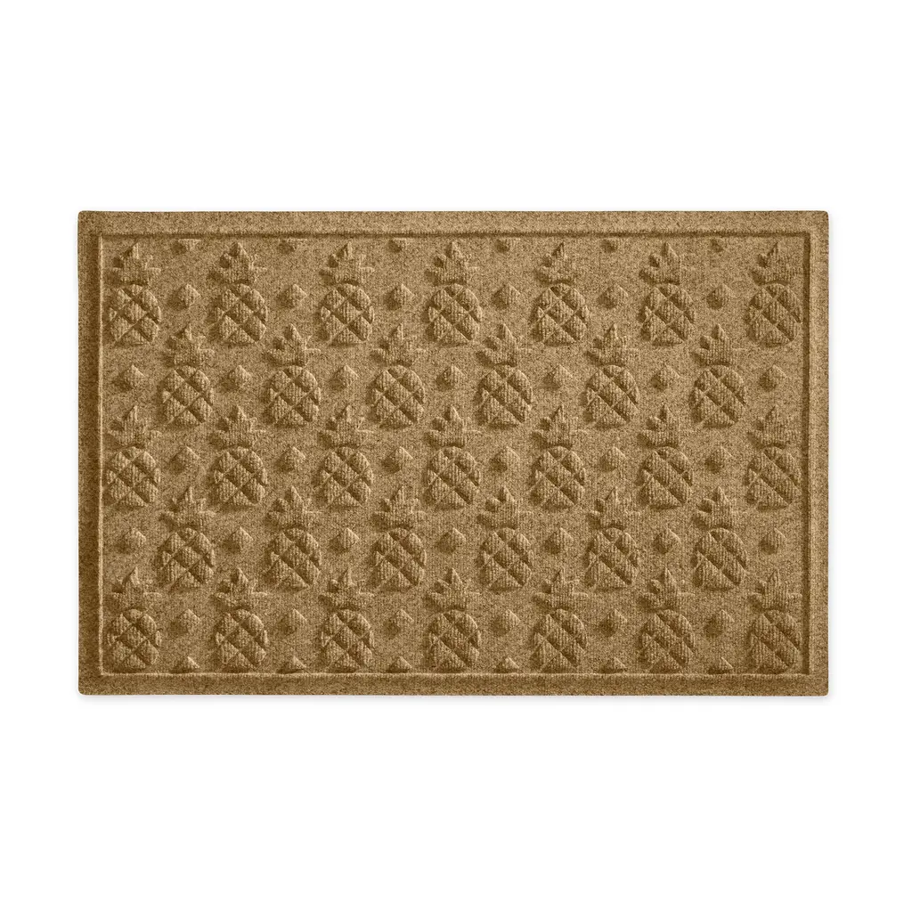 Our dependable, reliable Pineapple Waterhog Doormats are better than ever! Commercial-grade Waterhogs offer the same high-level of performance, durability and effectiveness you've come to depend on with a more eco-friendly construction. Waterhog Mats feature a super-durable, PET fabric face made from 100% recycled post-consumer plastic bottles. Depending upon the size, each Waterhog can contain 10-30 recycled bottles that otherwise may have been destined for a landfill. The bi-level surface grabs onto and soaks up moisture, dirt, leaves and more to keep floors clean and dry. Plus, the unique water dam design holds up to 1½ gallons of water per square yard. Super-durable Waterhogs are anti-static, quick-drying and they won't fade or rot. Just vacuum or hose down to clean - easy! The hefty rubber backing has 20% recycled content and stays in place. Certified Slip-Resistant by the NFSI (National Floor Safety Institute). Exceeds requirements for FF2-70-Standard for surface flammability of small carpets. Sizes are approximate. Made in USA.