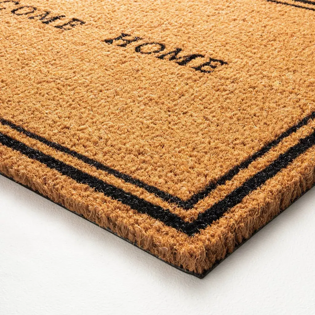 Add a classically inviting feel to your entryway with this 'Welcome Home' Coir Doormat from Hearth & Hand™ with Magnolia. Made from all-natural coir fibers, this rectangular medium-pile doormat helps keep your space clean by scraping away dirt and mud right at your doorstep, while the backing keeps it from slipping and sliding. Designed for everyday use, this outdoor doormat features the text “Welcome Home” in black script set against a tan background with black border to usher in guests with a warm welcome. Celebrate the everyday with Hearth & Hand — created exclusively for Target in collaboration with Magnolia, a home and lifestyle brand by Chip & Joanna Gaines. Built upon our shared commitment to giving back to our communities, these pieces reveal the beauty of everyday moments shared with family and friends.