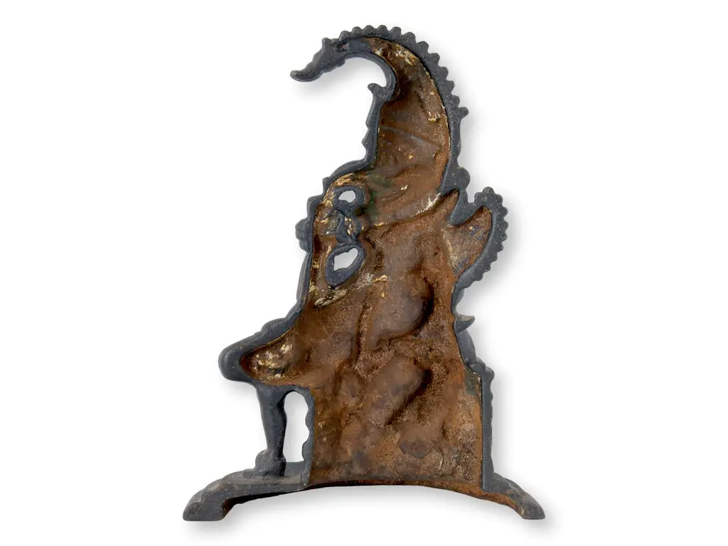 Enhance your home with a touch of whimsical charm with this large Mr. Punch doorstop, crafted from durable cast iron. Depicting the iconic character from traditional British puppetry, this doorstop is both functional and decorative. Its intricate detailing captures Mr. Punch's mischievous expression and classic costume, making it a delightful addition to any room. The heavy-duty cast iron ensures your door stays open, while its vintage design adds a nostalgic and playful element to your decor.