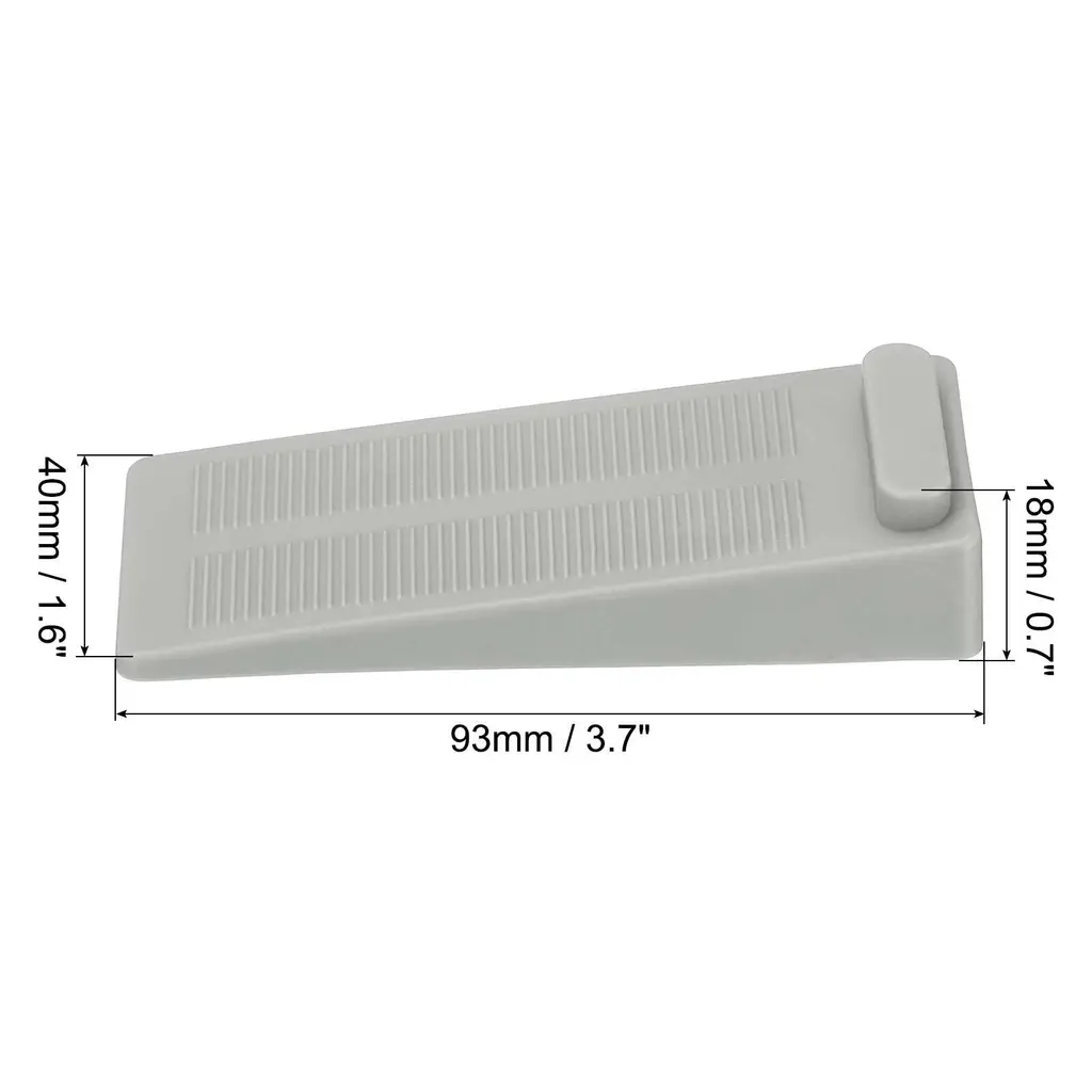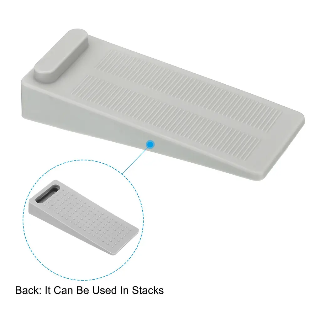 Door stoppers for bottom of door are suitable for wooden doors, glass doors, heavy industrial doors, and also suitable for floors of different materials, such as wood, carpet, concrete, ceramic tiles, linoleum, stone, asphalt and ceramic floors. The design at the bottom even works on rough or Provides excellent bite and grip on uneven surfaces. The rubber door stopper wedge can be used in homes, church, dormitory, offices, classrooms, etc.SpecificationDoor stop material: TPRColor: GraySize: 93x40x18mm/3.7x1.6x0.7 inch (L * W * H)AdvantageDoor wedge made of rubber, these doorstops help protect hardwood and laminate flooring from scratches and dents, are durable and resistant to deformation, and can grip the ground well to provide optimal friction. The door stop won't move and keeps the door stable. It's also very safe. The sloped surface prevents the door from closing on its own, so you don’t have to worry about being frightened by the door being closed in strong winds.Instruction The door stops does not need to be drilled for installation, it can be placed directly on the floor for use. Can be used in front of the door or behind the door.NOTE: Please note that the bottom of the door stop and door bottom are suitable. When the door stop is not high enough, it can be used in stacks.