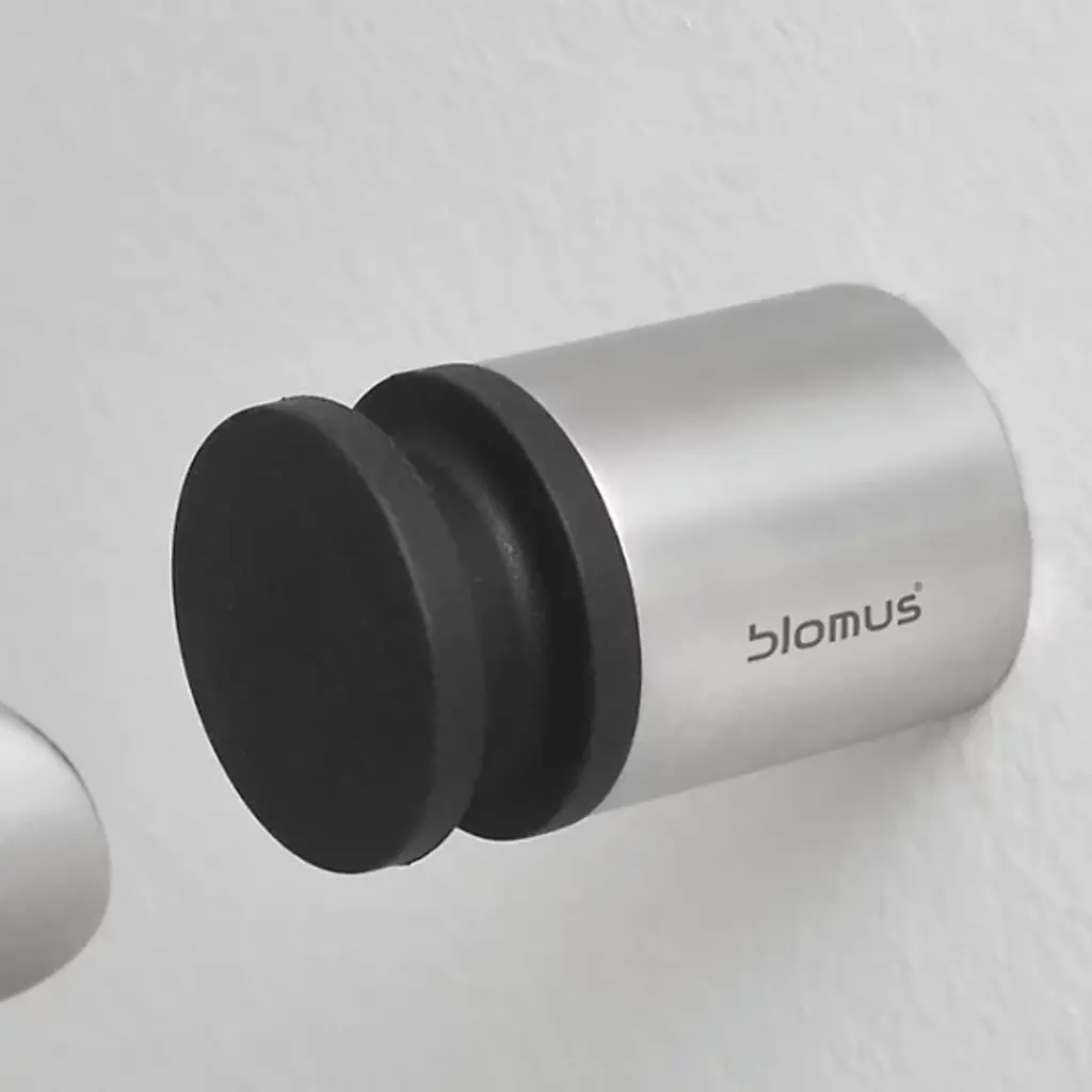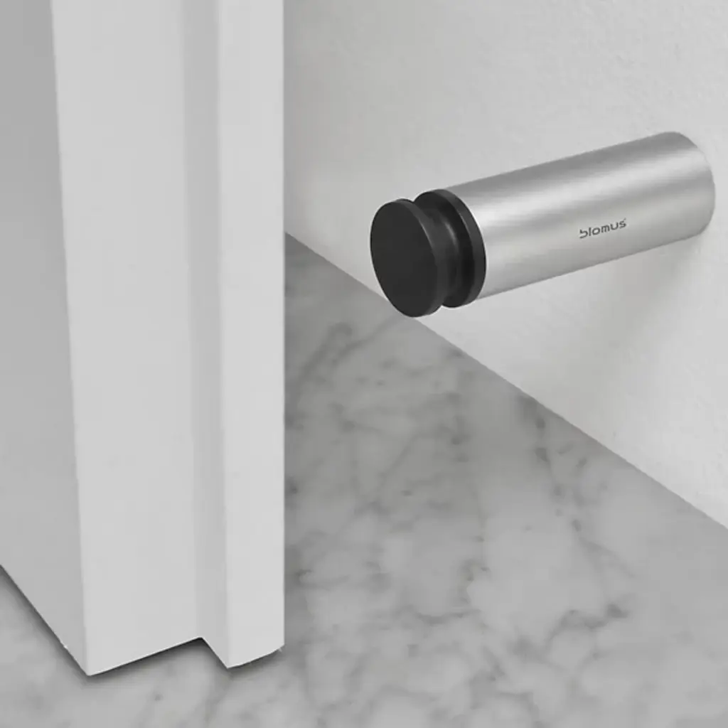 Make loud bangs and dented walls a thing of the past with the wall-mounted Blomus ENTRA Doorstop. At the end of a cylindrical body of matte stainless steel, it has a buffer of soft black rubber and plastic. The ENTRA is available in length options for installation at door handle or door bottom height as desired.