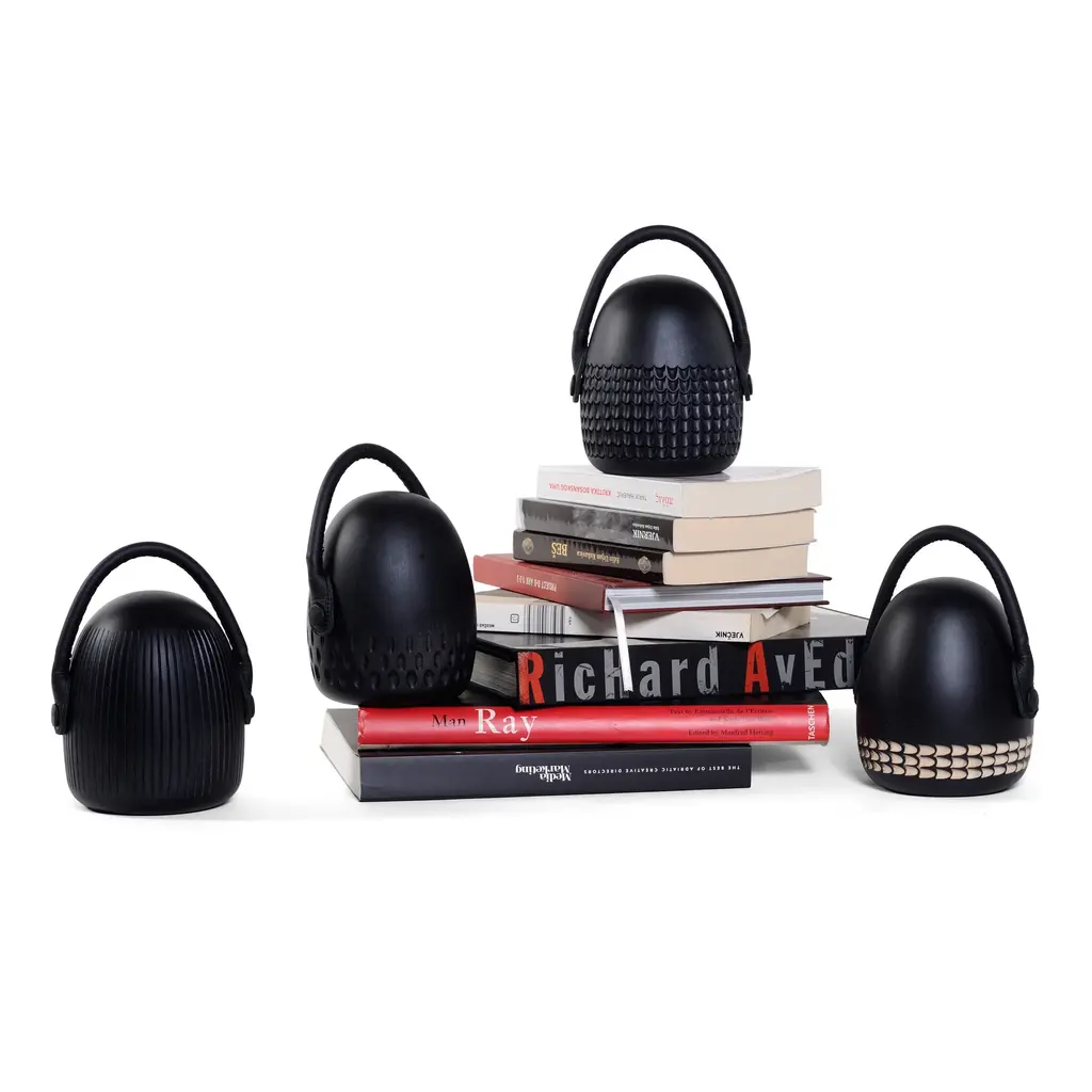 The Stopme Bookstop + Doorstop by Zanat is a versatile and elegant accessory, perfect for any home or office. Designed by Monica Förster, this piece features a hand-carved solid wood base and a skillfully stitched leather handle. It can be used to keep books in place or to hold doors open, combining functionality with a decorative touch. Available in black stained maple with various intricate carvings, the Stopme showcases Zanat's dedication to craftsmanship and design excellence, making it a sophisticated addition to any space.