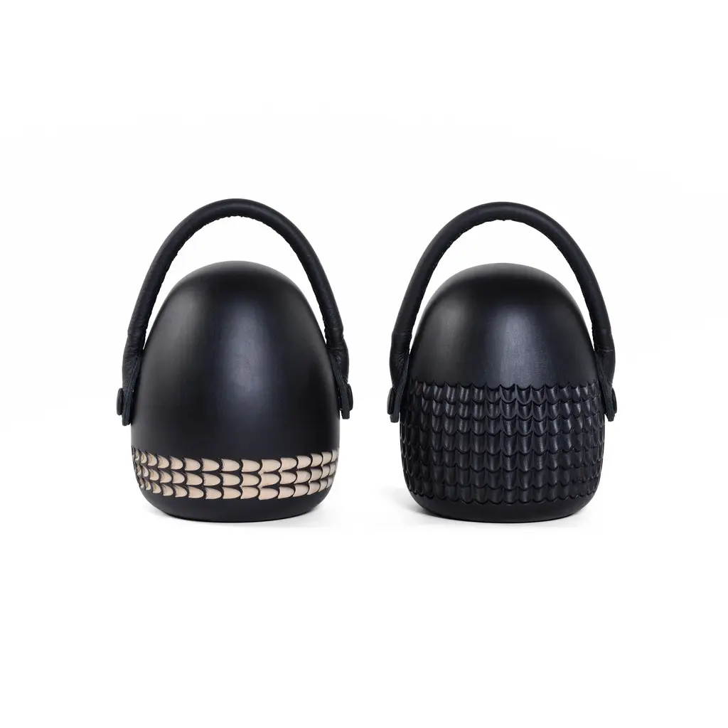 The Stopme Bookstop + Doorstop by Zanat is a versatile and elegant accessory, perfect for any home or office. Designed by Monica Förster, this piece features a hand-carved solid wood base and a skillfully stitched leather handle. It can be used to keep books in place or to hold doors open, combining functionality with a decorative touch. Available in black stained maple with various intricate carvings, the Stopme showcases Zanat's dedication to craftsmanship and design excellence, making it a sophisticated addition to any space.