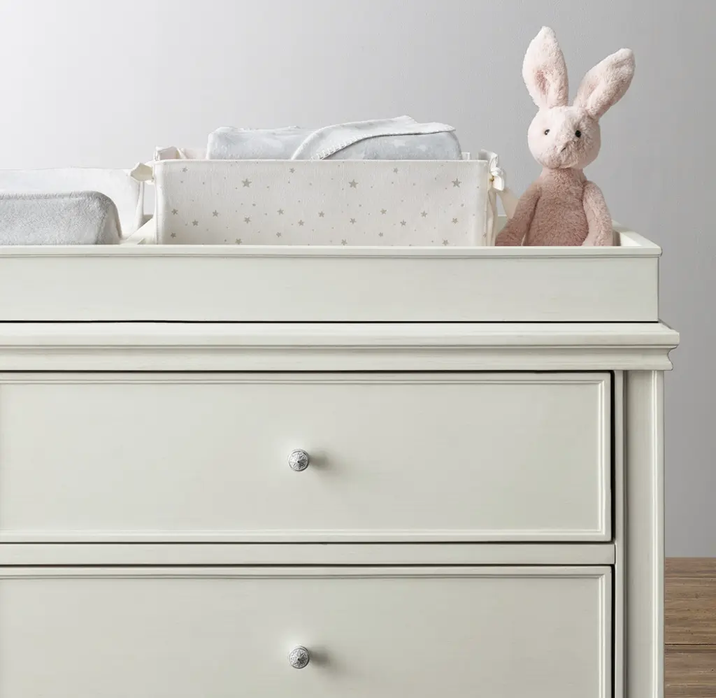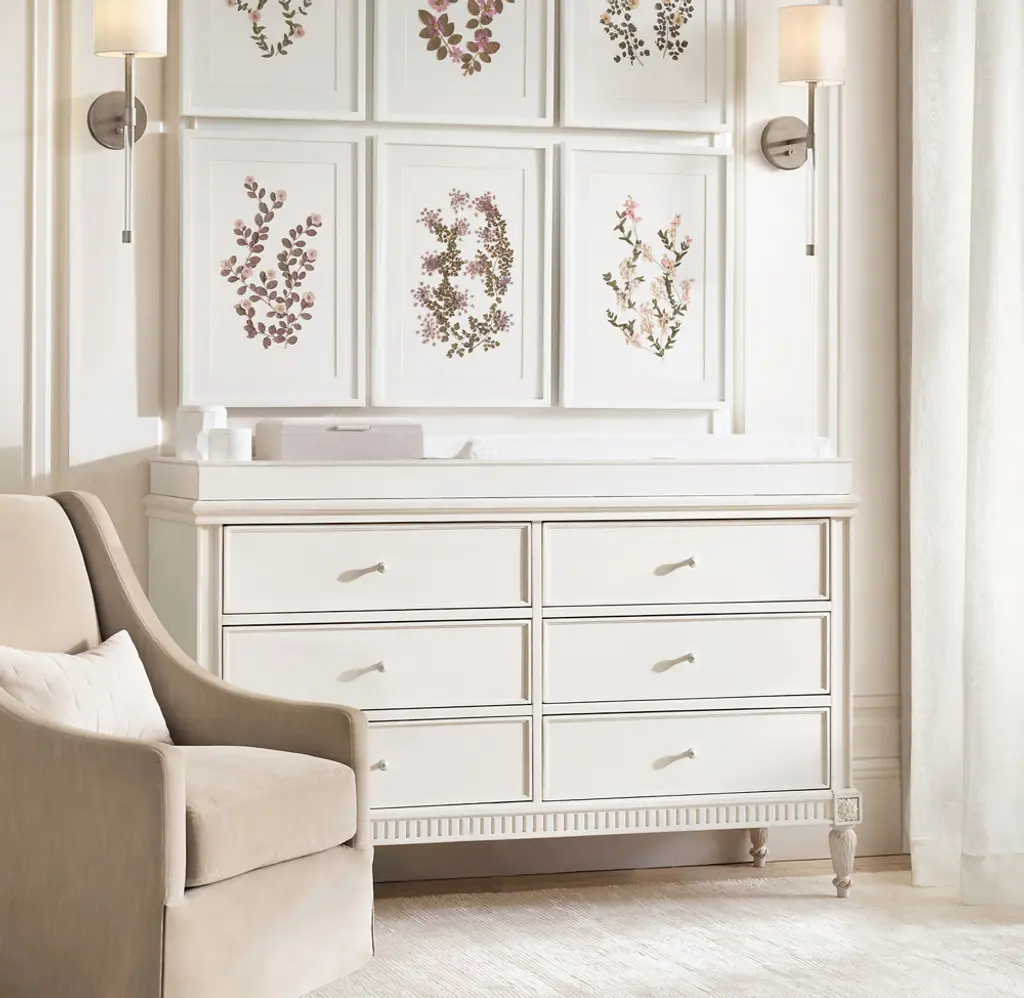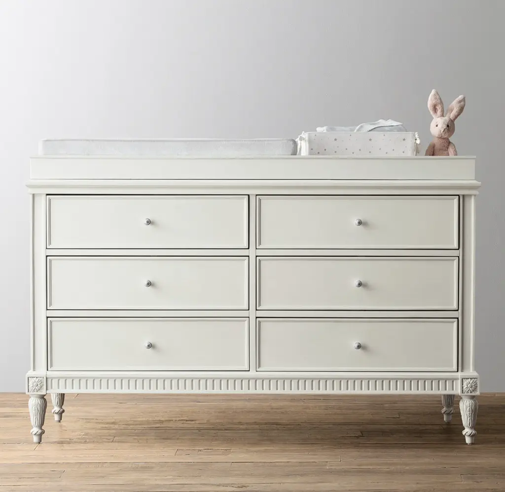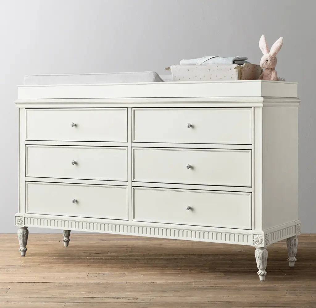 Inspired by a late 18th-century French antique, our collection combines a linear silhouette and intricate neoclassical carvings – a fluted base, corner rosettes and feet with acanthus leaf details – for a refined, feminine feel. SHOP THE ENTIRE COLLECTION