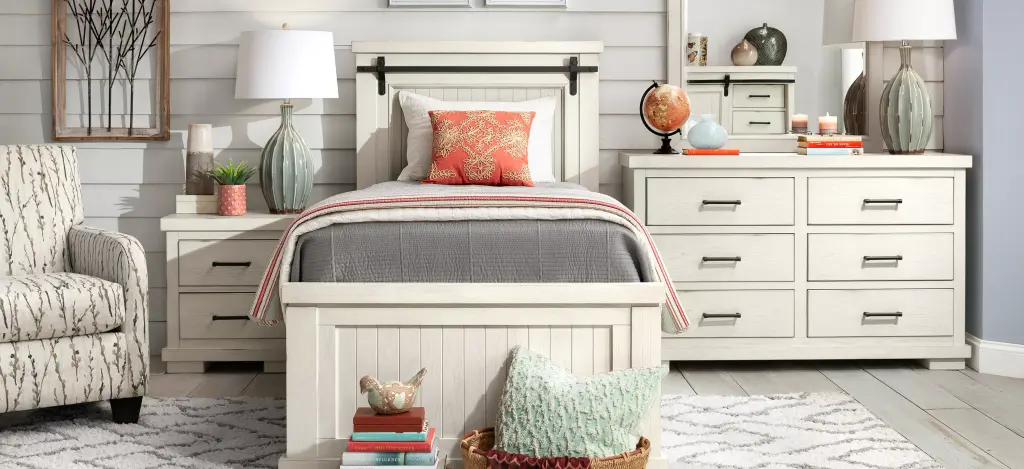 Whether you're furnishing a child's room or a space for guests, you can establish a look that's both fun and sophisticated with the Bexley dresser. This piece gives you the freedom of customization to have a worthy bedroom. Bexley isn't only practical, however. It showcases plenty of style with dark metal accents.