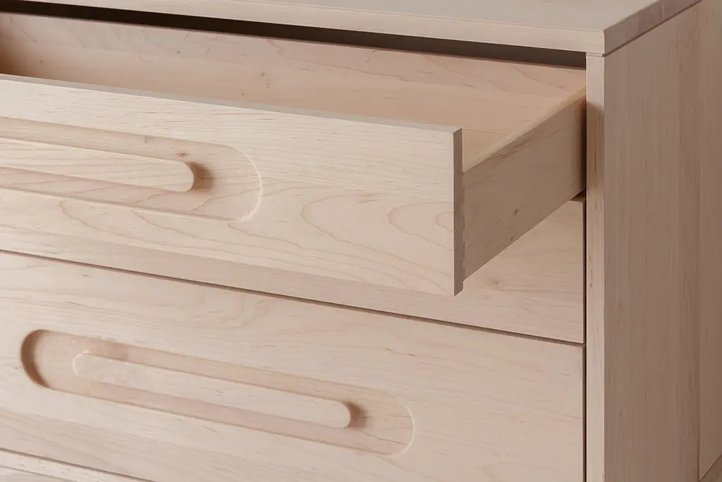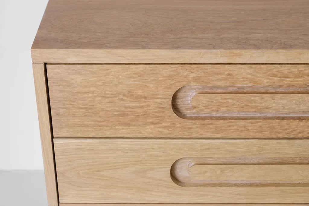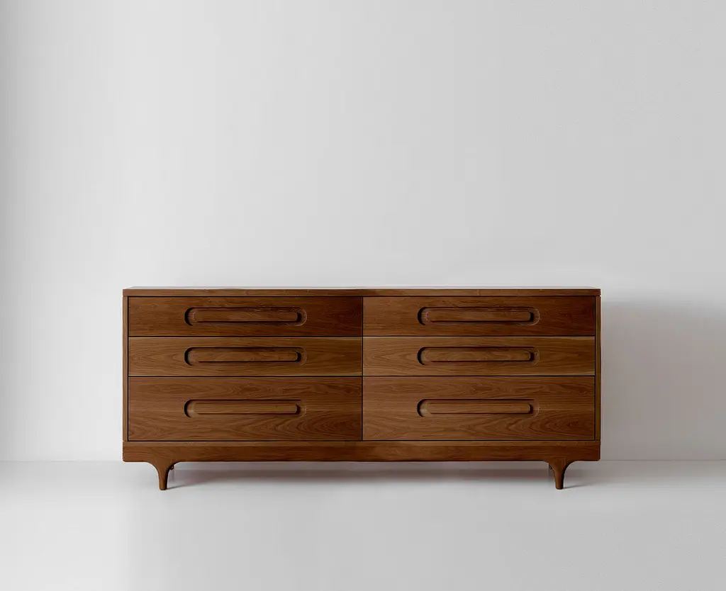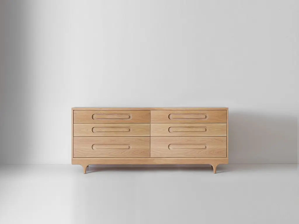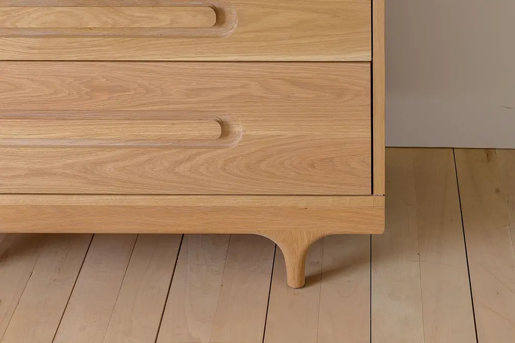 An embrace of form following function, the Caravan Double Dresser features roomy drawers and rounded drawer pull designs integrated seamlessly into the piece. Constructed from solid Ash, White Oak and Black Walnut, which is then hand-rubbed and finished with a premium organic oil/wax finish.