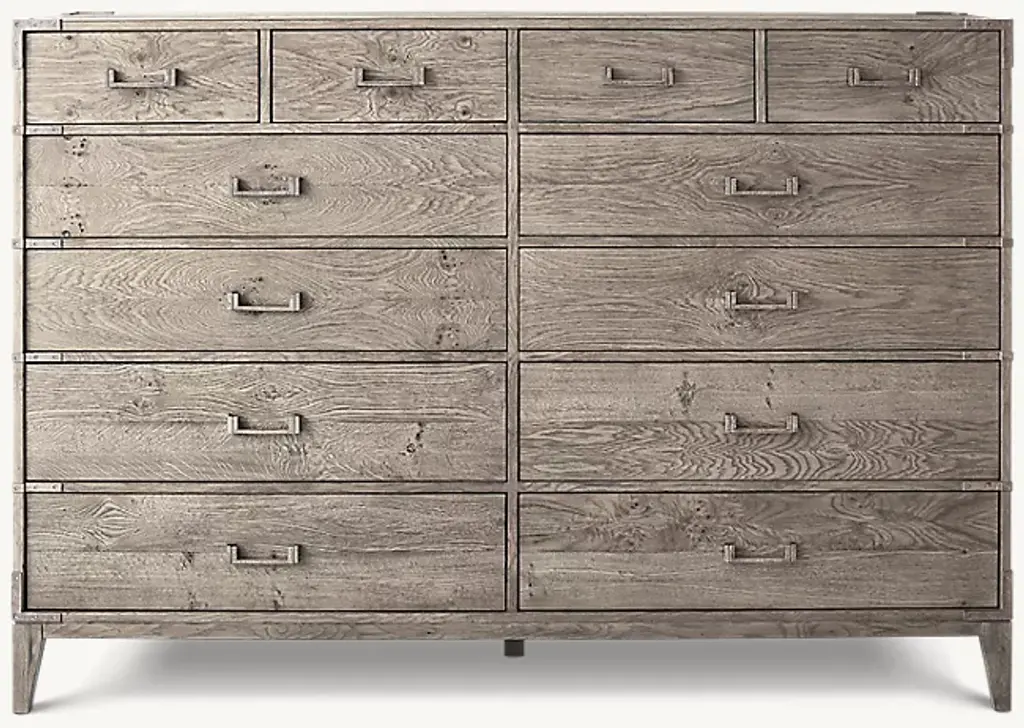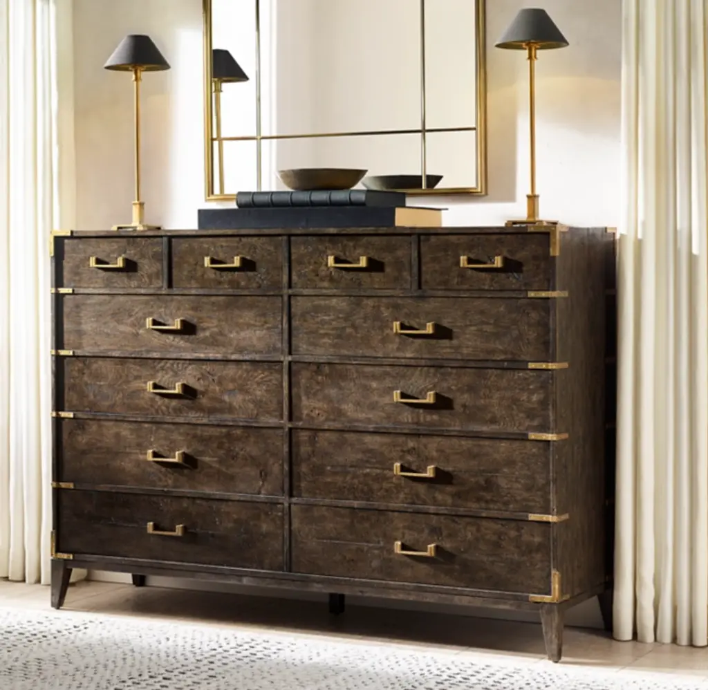 Cayden Campaign 12-Drawer Dresser With Corner Brackets
