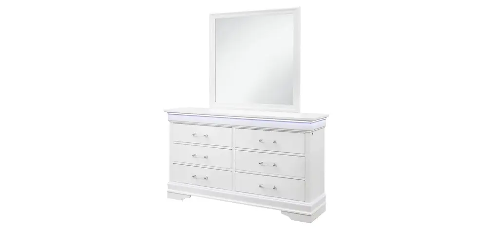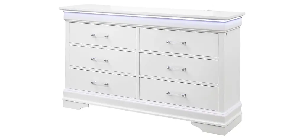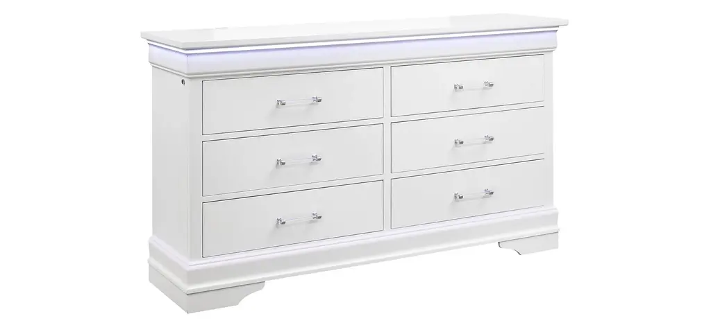 A fresh new take on a traditional style, This Charlie Dresser is a take on the modern day Louis Phillipe. The LED lighting accents the true lines of the traditional design and the Acrylic hardware provides a modern, updated look.