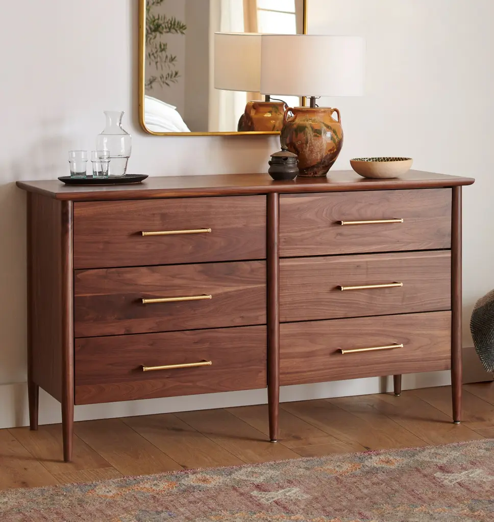 Brings retro-inspired style to your child's room. Made of durable, sustainably sourced wood. GREENGUARD Gold Certified as being low VOC. Plenty of room for clothes, bedding and more.