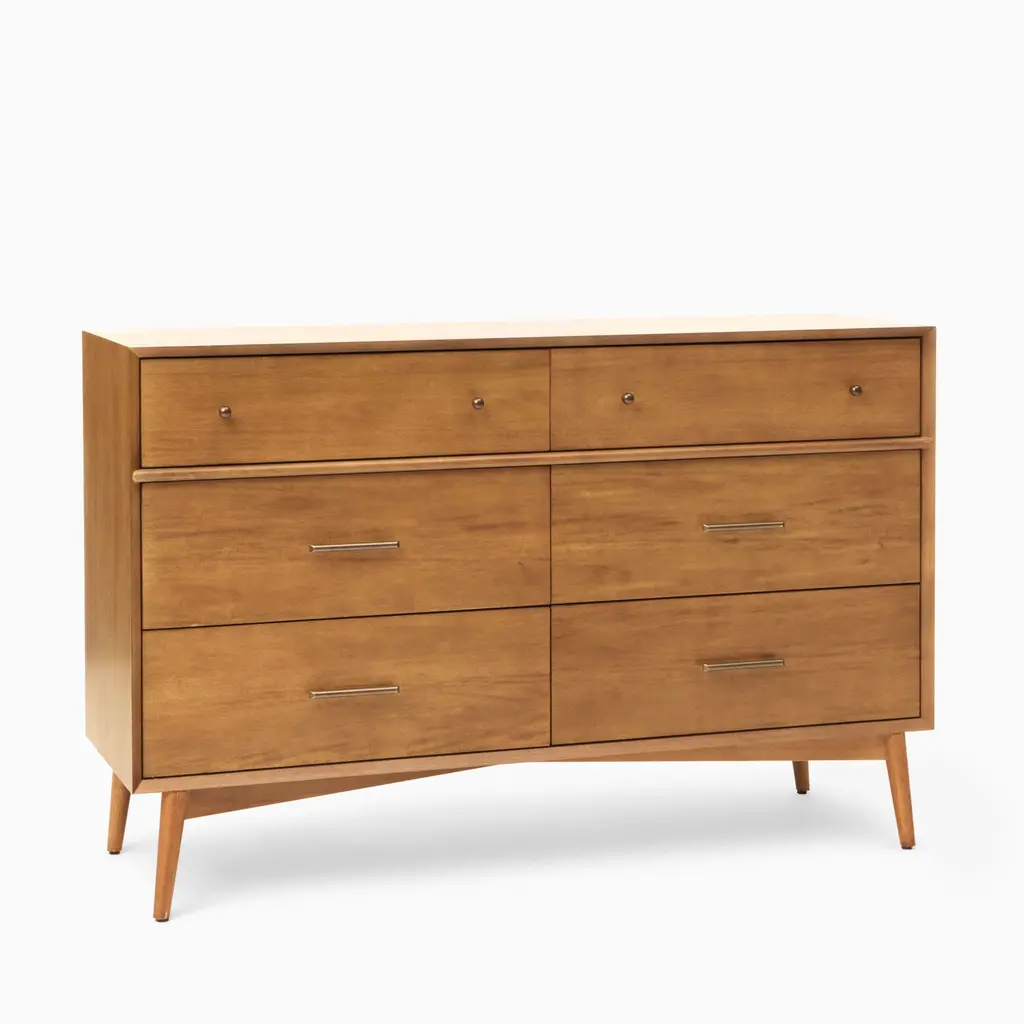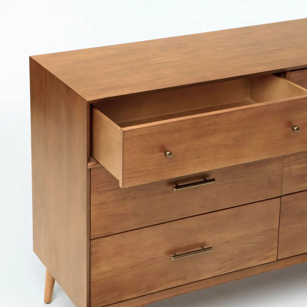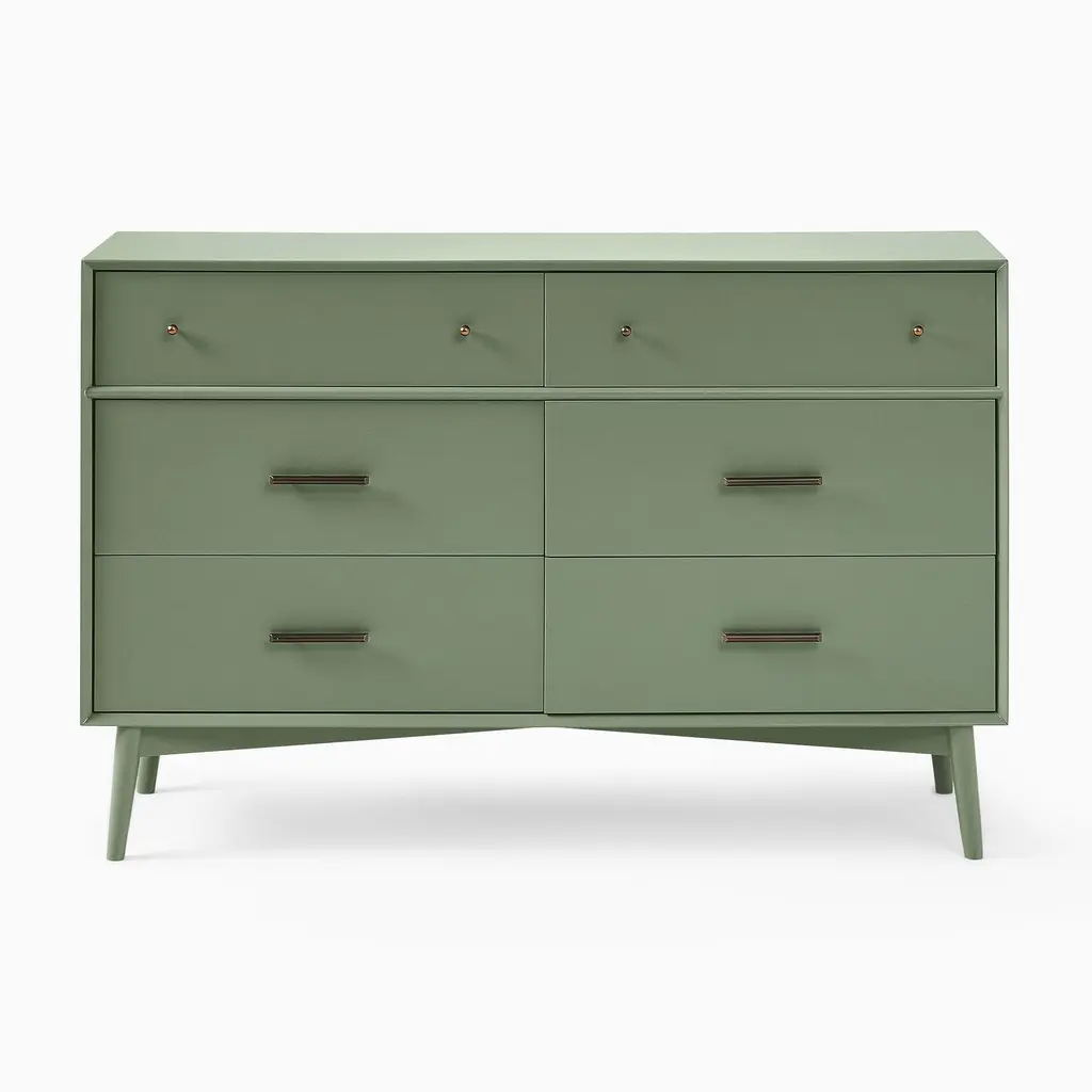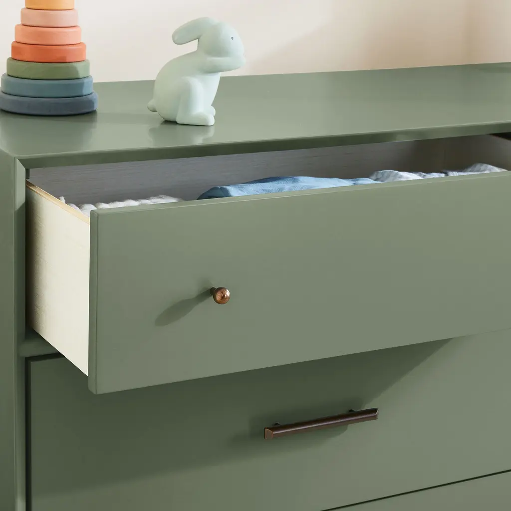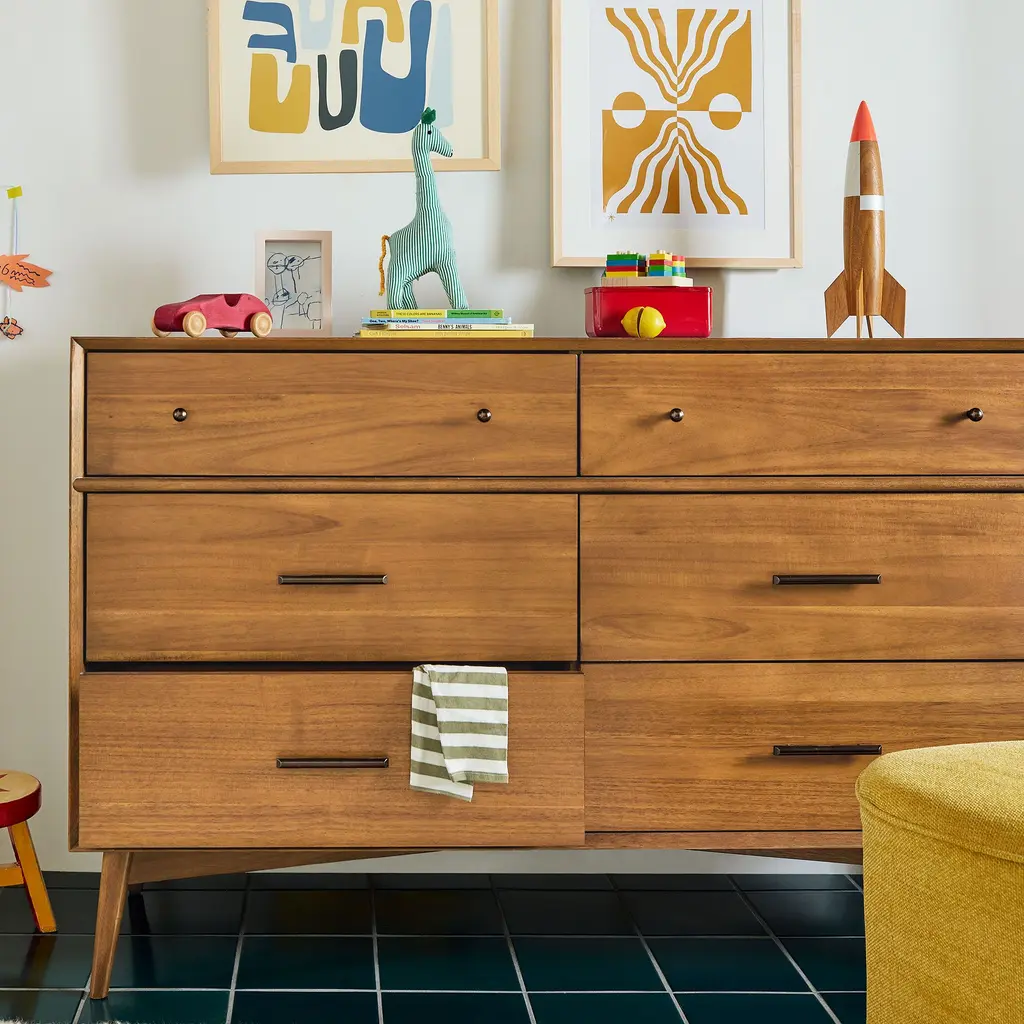 Brings retro-inspired style to your child's room. Made of durable, sustainably sourced wood. GREENGUARD Gold Certified as being low VOC. Plenty of room for clothes, bedding and more.