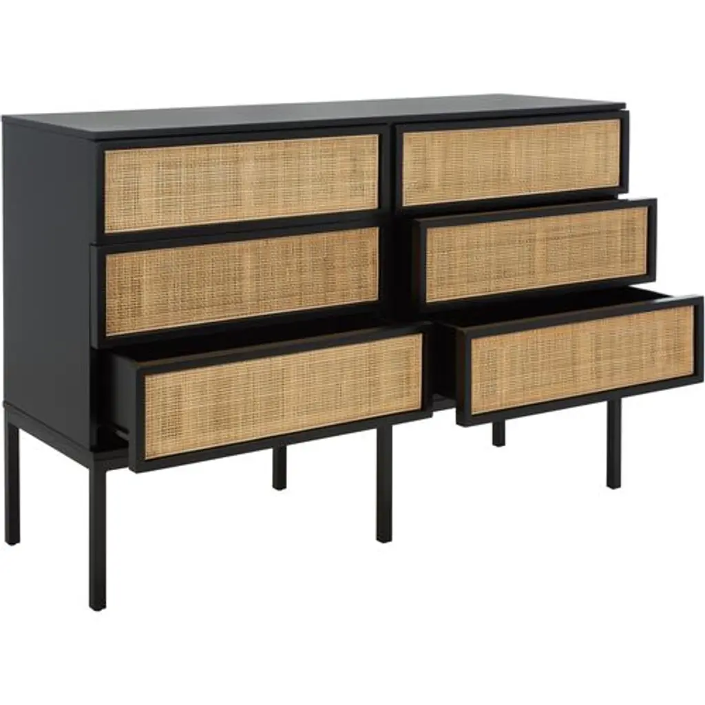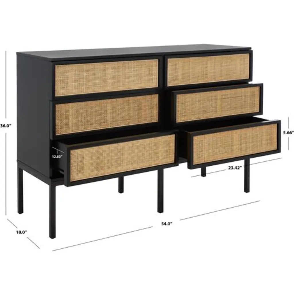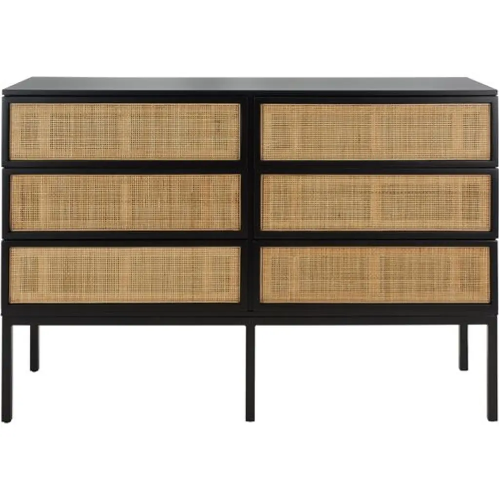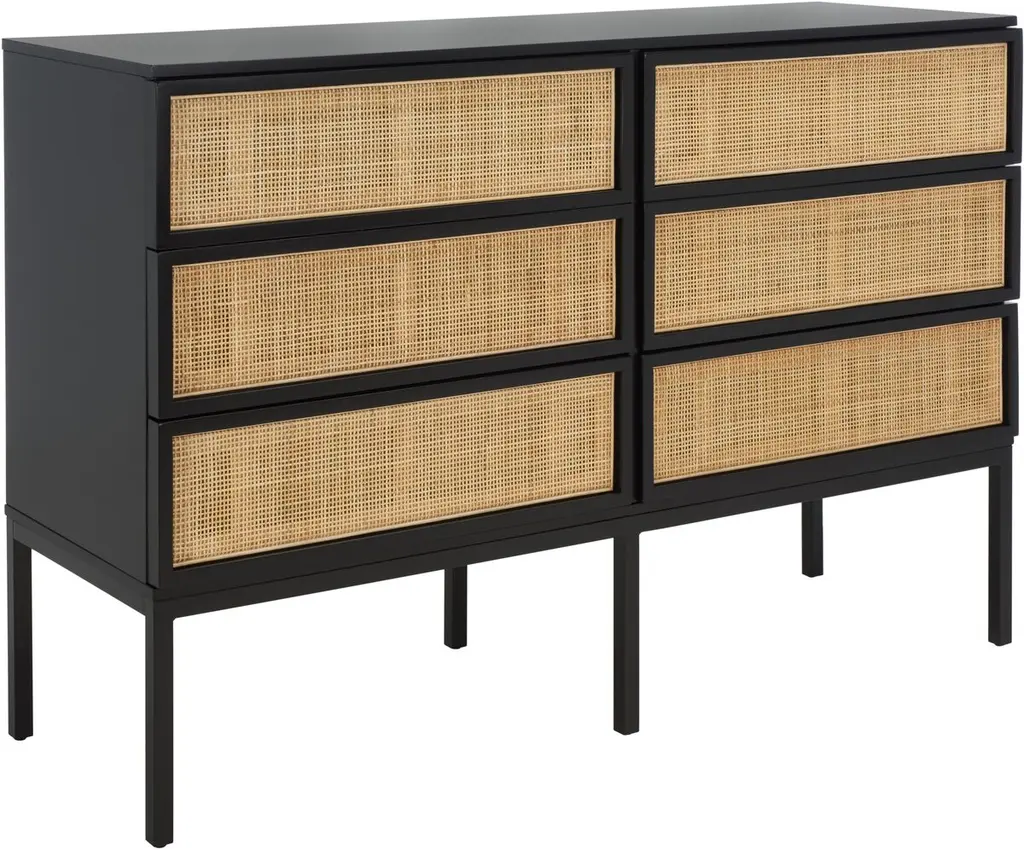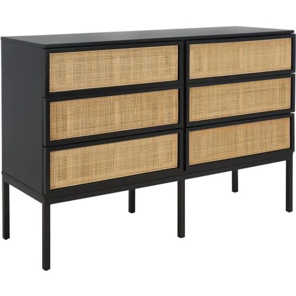 Miranda 6-drawer Rattan Dresser, Black/natural