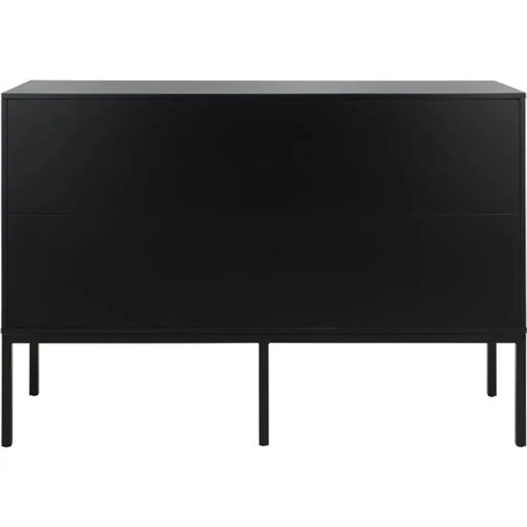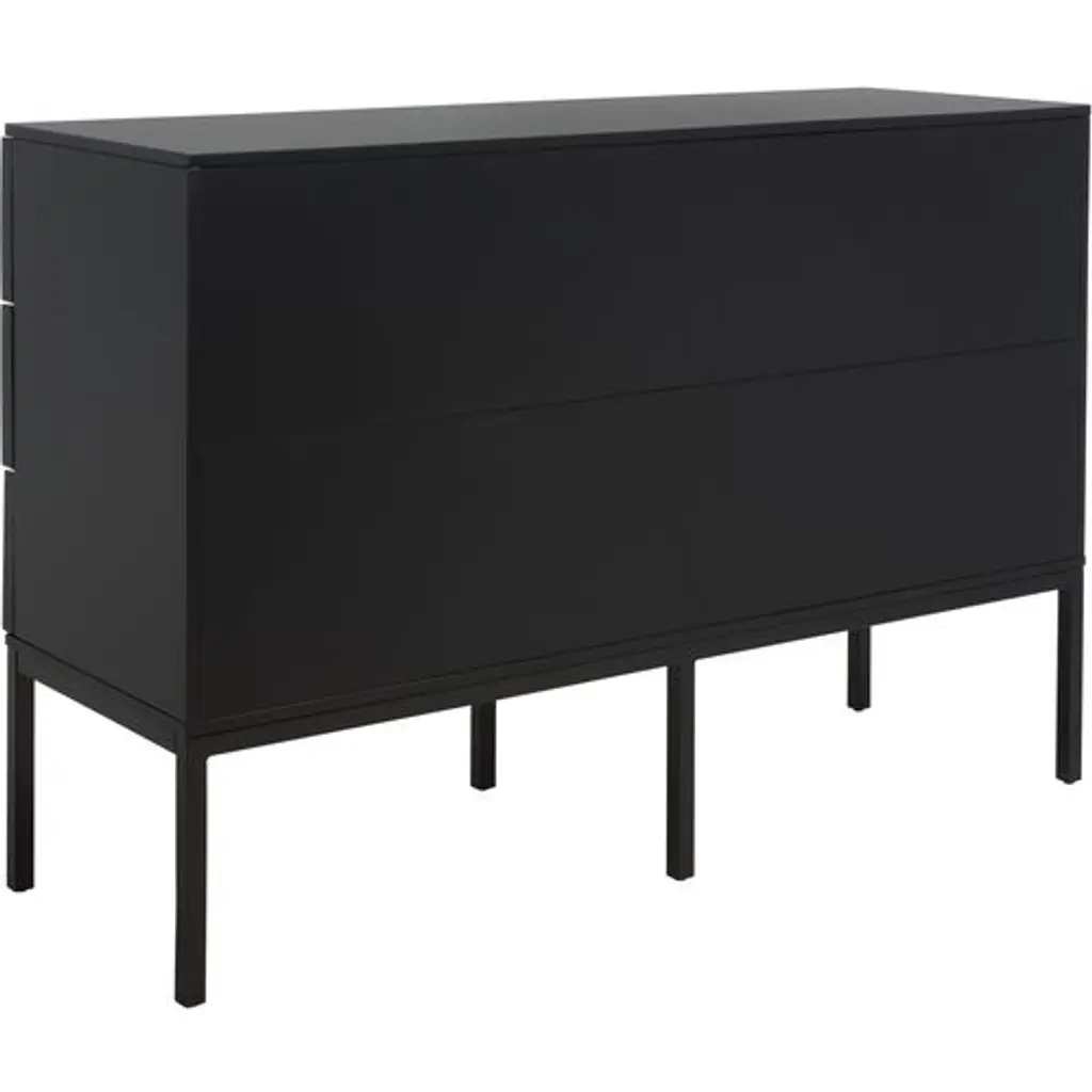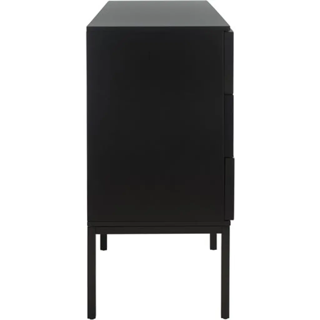 The woven rattan panels of this dresser's six drawer fronts provide organic elegance and tropical breeziness; the black frame gives it contemporary sophistication.