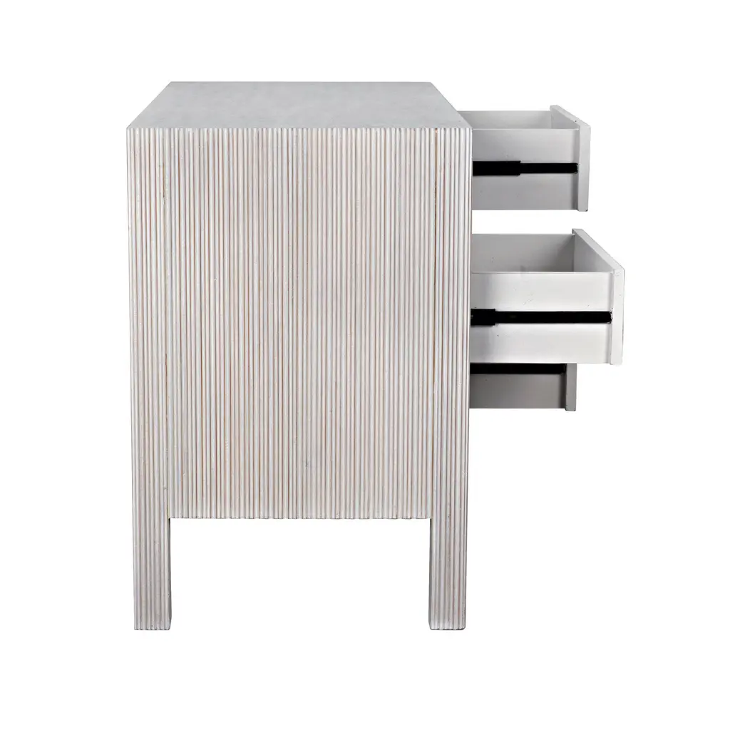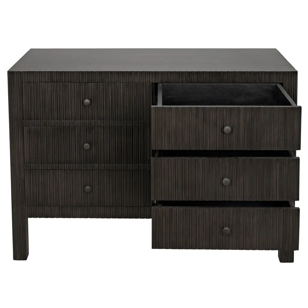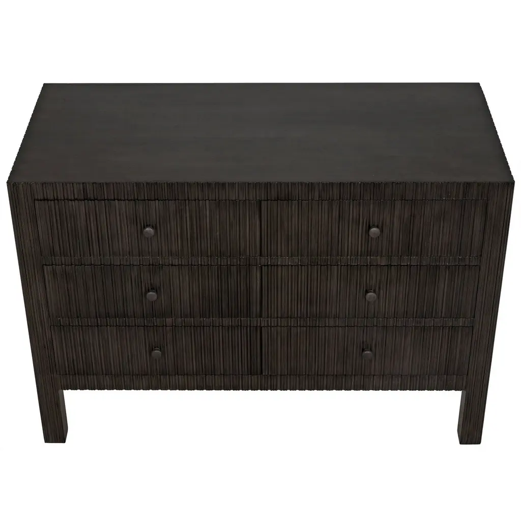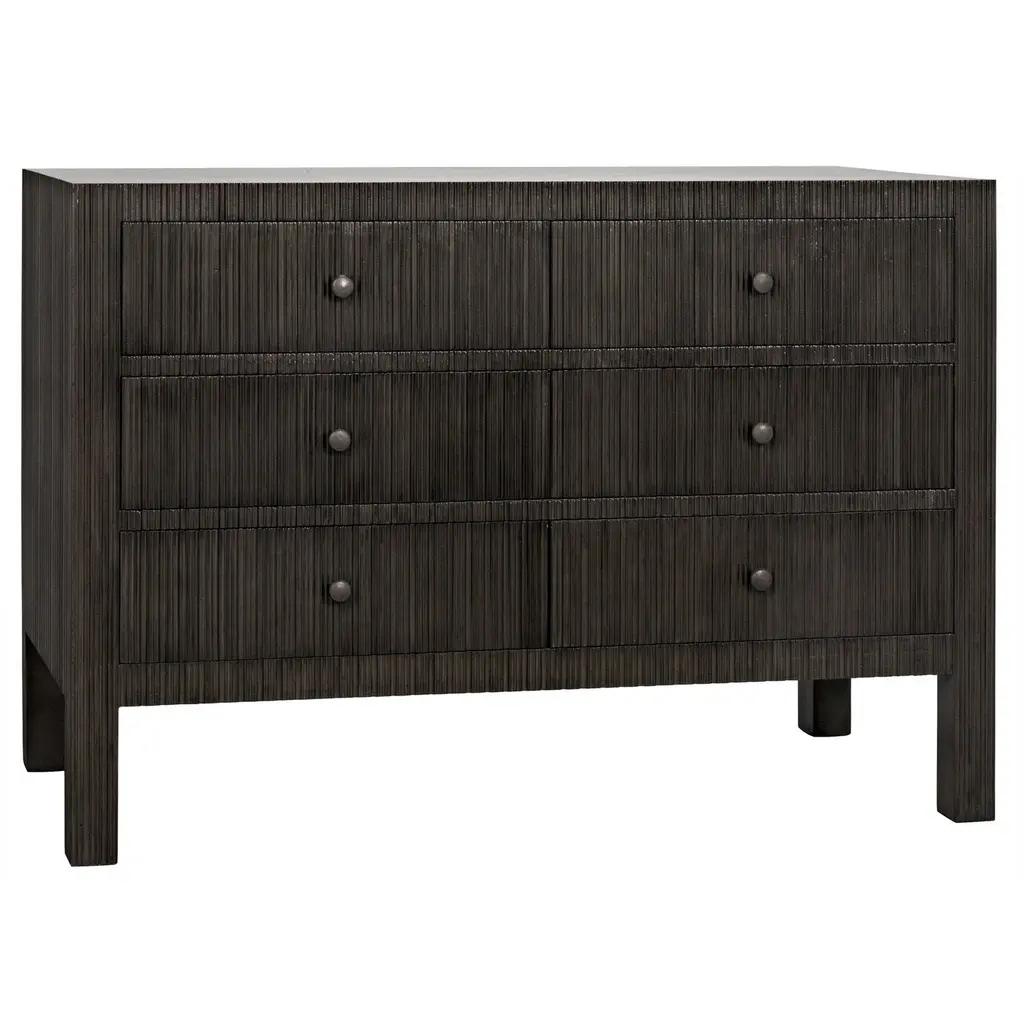 Elegance interpreted, this solid mahogany dresser is distinguished by its clean lines, expert handcraftsmanship, and the pale finish that enhances the natural grain of its hardwood. Width (in.): 47.5 Depth (in.): 22 Height (in.): 33 Weight (lbs.): 125 Material: Mahogany and Veneer w/ Brass Pulls Brand: Noir Shipping: S
