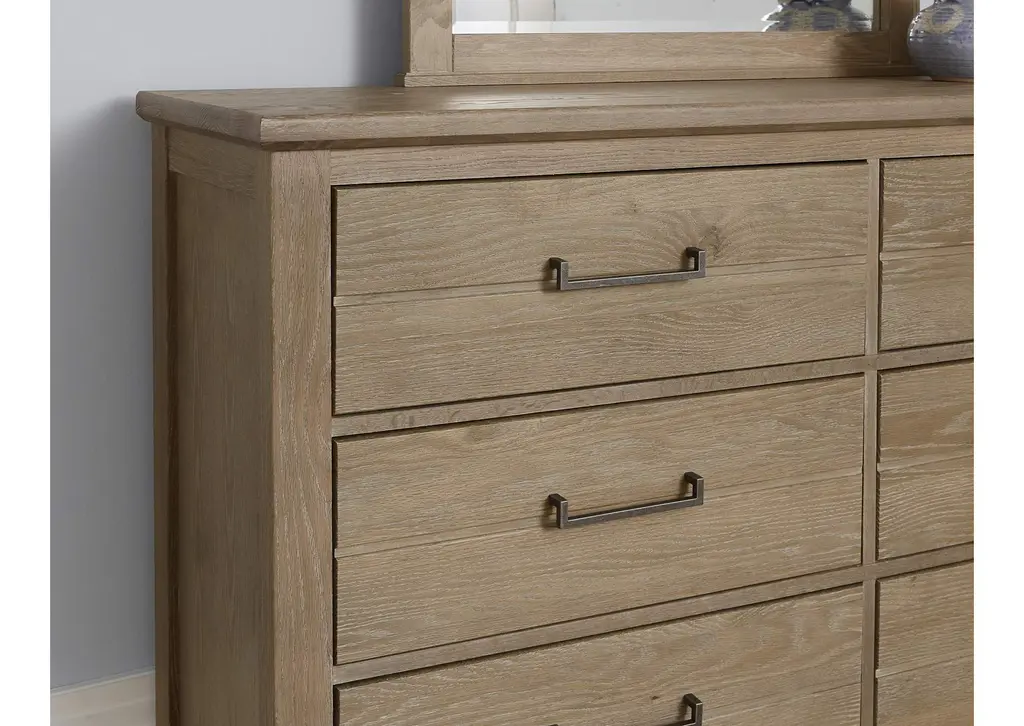 Generously scaled Six Drawer Bureau with a wire brushed waxy brown finish. Featuring custom antique pewter campaign style drawer pulls Weight 220.000 lbs. (99kgs.)