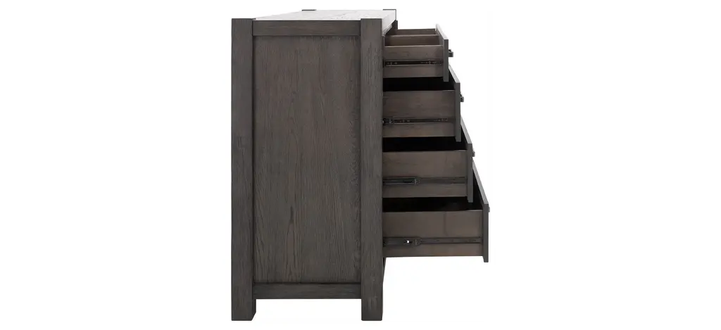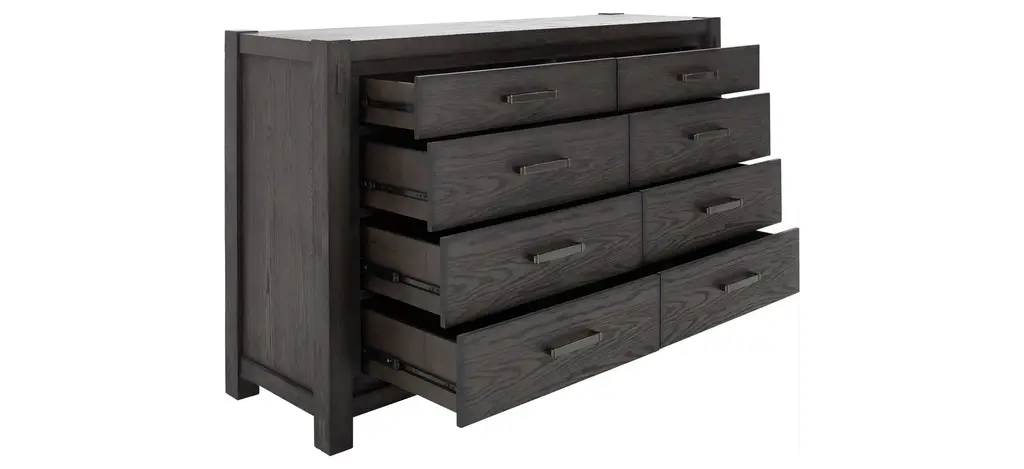 The Rockwell dresser blends casual styling with functionality. The stunning deep wood tone matches well with any decor scheme. We espeically appreciate Rockwell's abundant storage with 8 drawers in this piece. What more could you want from a dresser that Rockwell doesn't offer?!