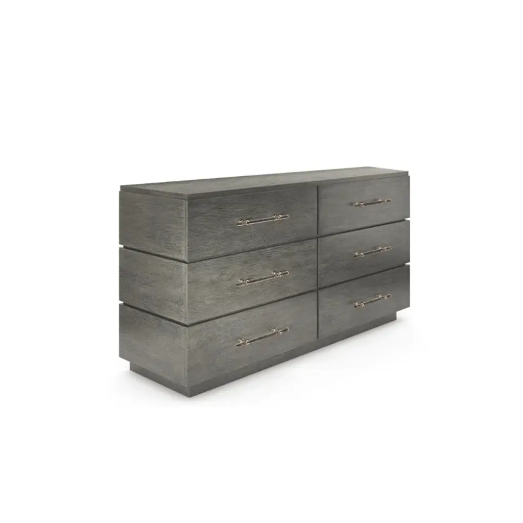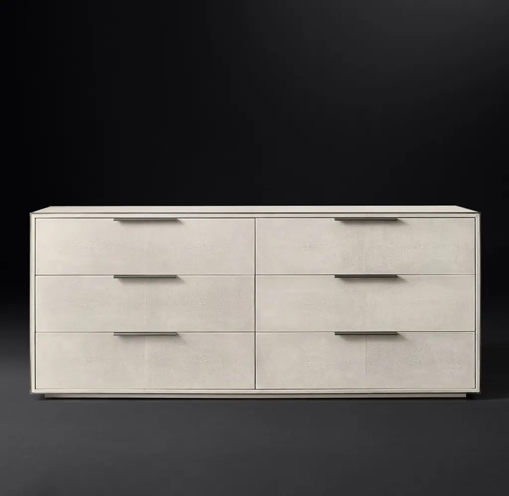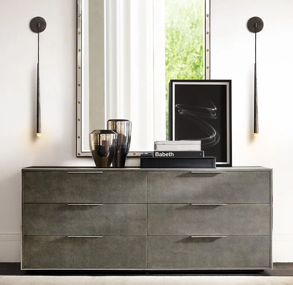 A 1970s interpretation of French Art Deco design, our bedroom collection from the Van Thiels celebrates the marriage of two eras. With elegant materials and a refined form, it's clad in rich shagreen-embossed leather with metal trim detail. SHOP THE ENTIRE COLLECTION