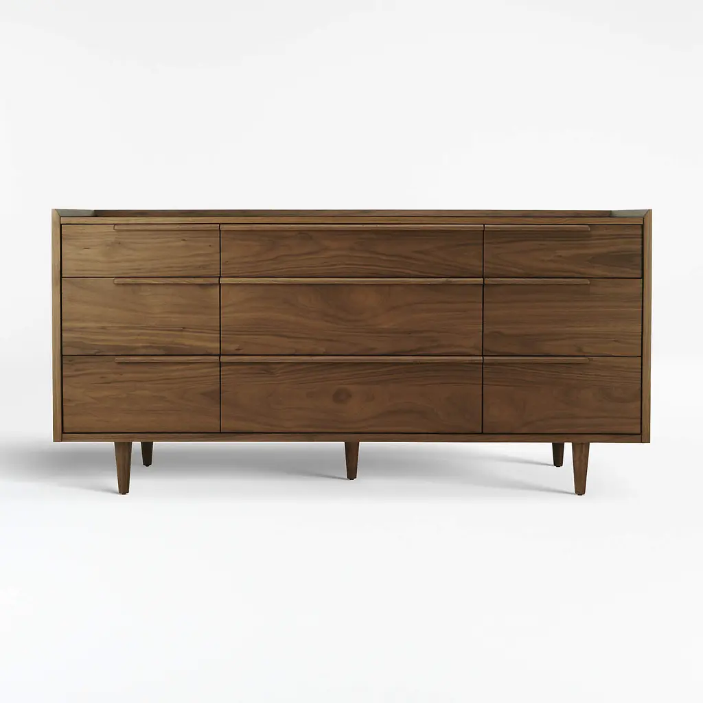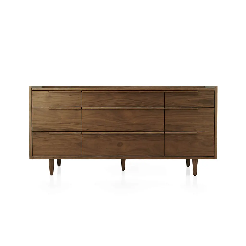 Our 1960s-inspired Tate collection recalls the timelessness of mid-century design with tailored profiles and streamlined shapes. Crafted of solid walnut and walnut veneer, Tate showcases gallery fronts and linear undercut drawer pulls supported by tapered turned legs.