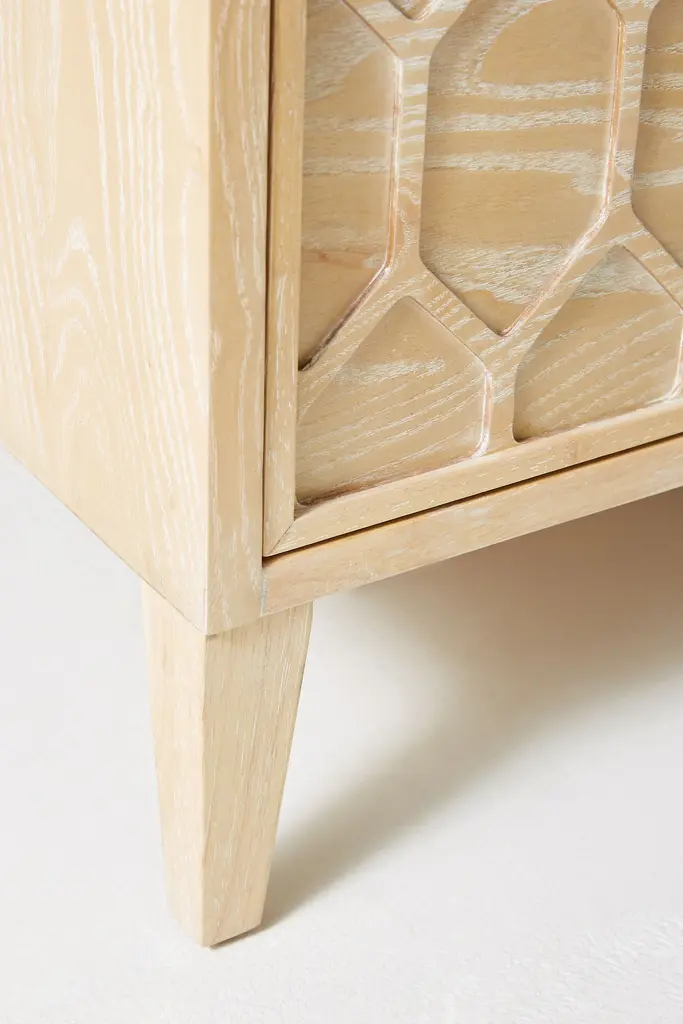 Like the garden trellises that inspired its design, our Textured Trellis collection invites a fresh perspective into your home. Complete with a raised motif on its ash wood facade, as well as faceted brass pulls, the timelessness of this dresser is found in both its details and stately silhouette. For ordering assistance and more, please contact us. For aesthetic advice and tips to help decorate your space, enjoy our complimentary home styling services.