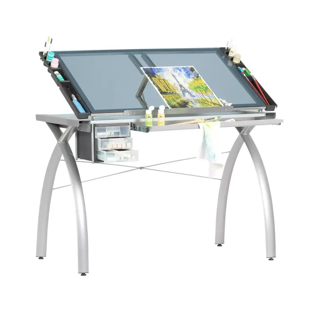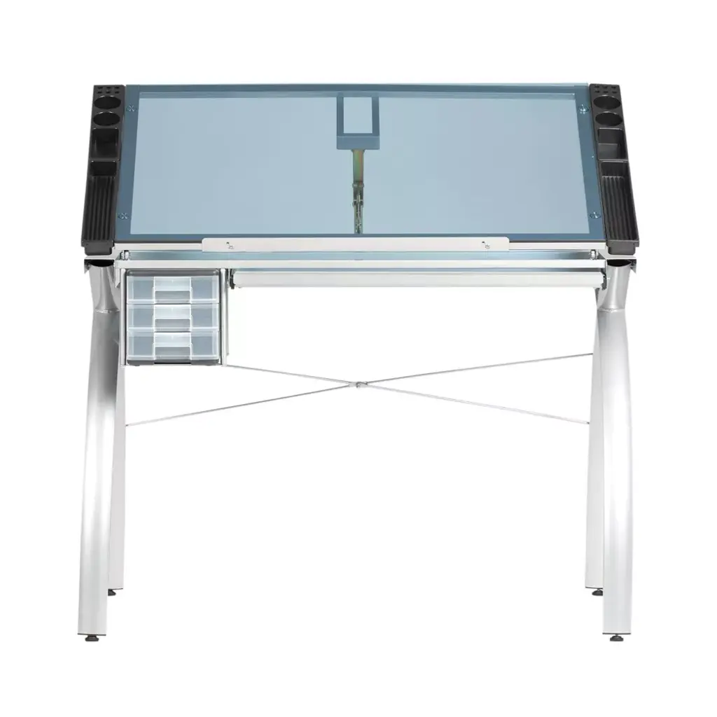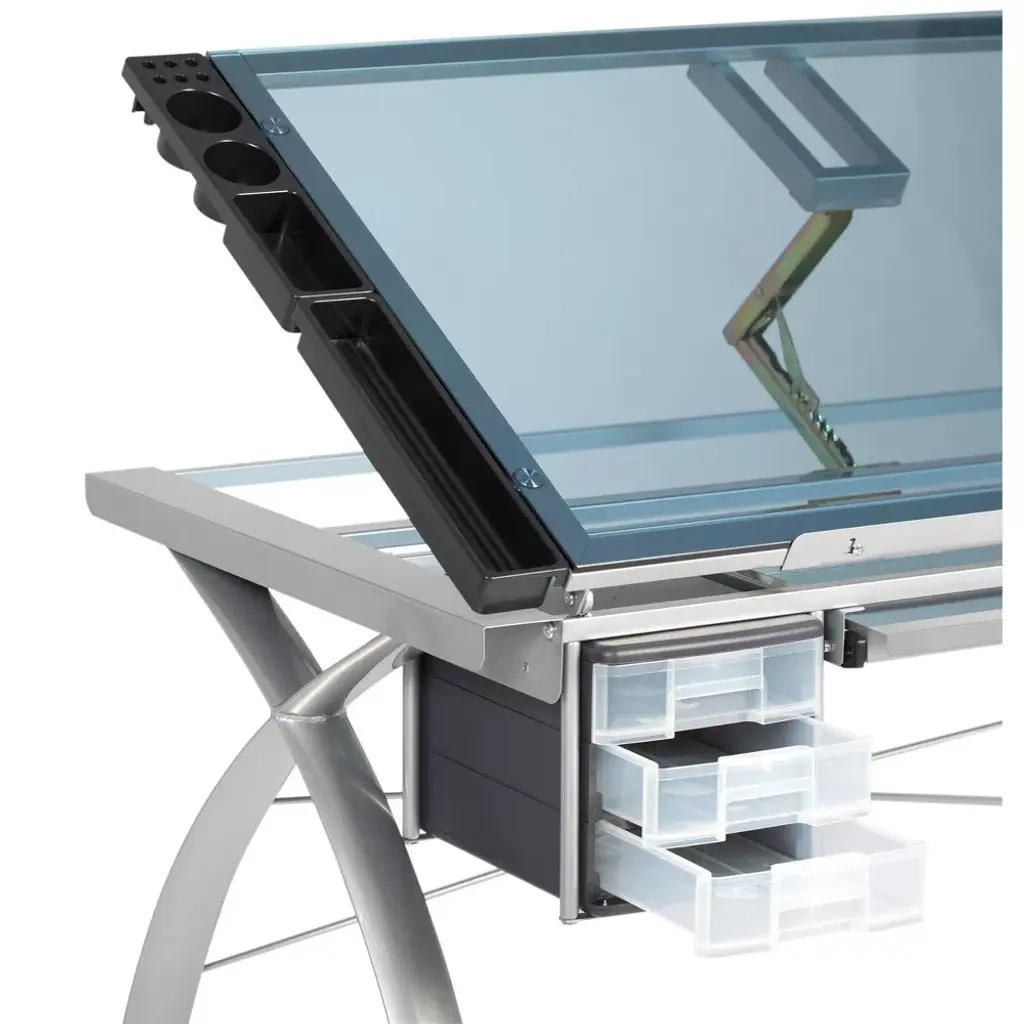 Studio Designs Canvas & Color Adjustable Craft Station Silver/blue Glass: Modern Style, Powder-coated Steel Frame, 3 Drawers, Leveling Feet