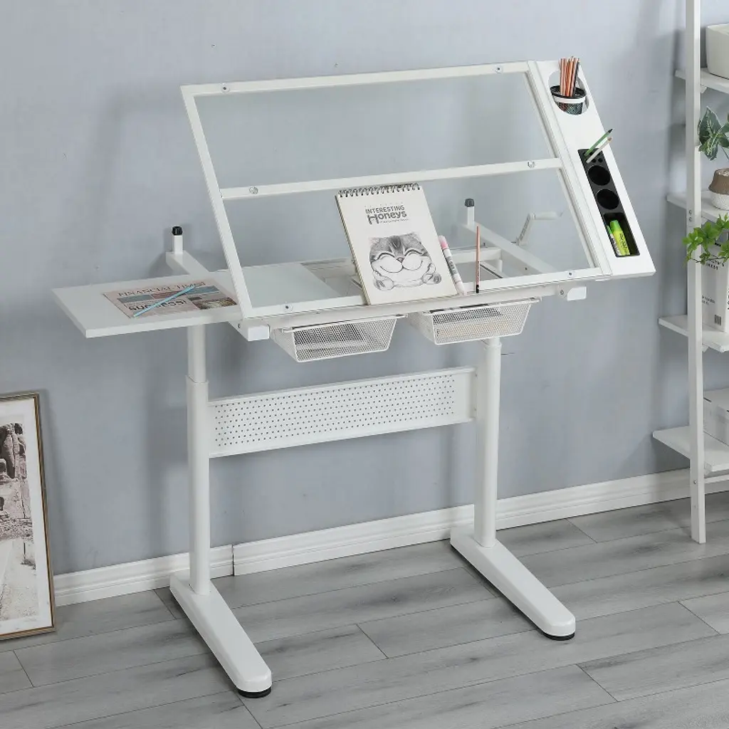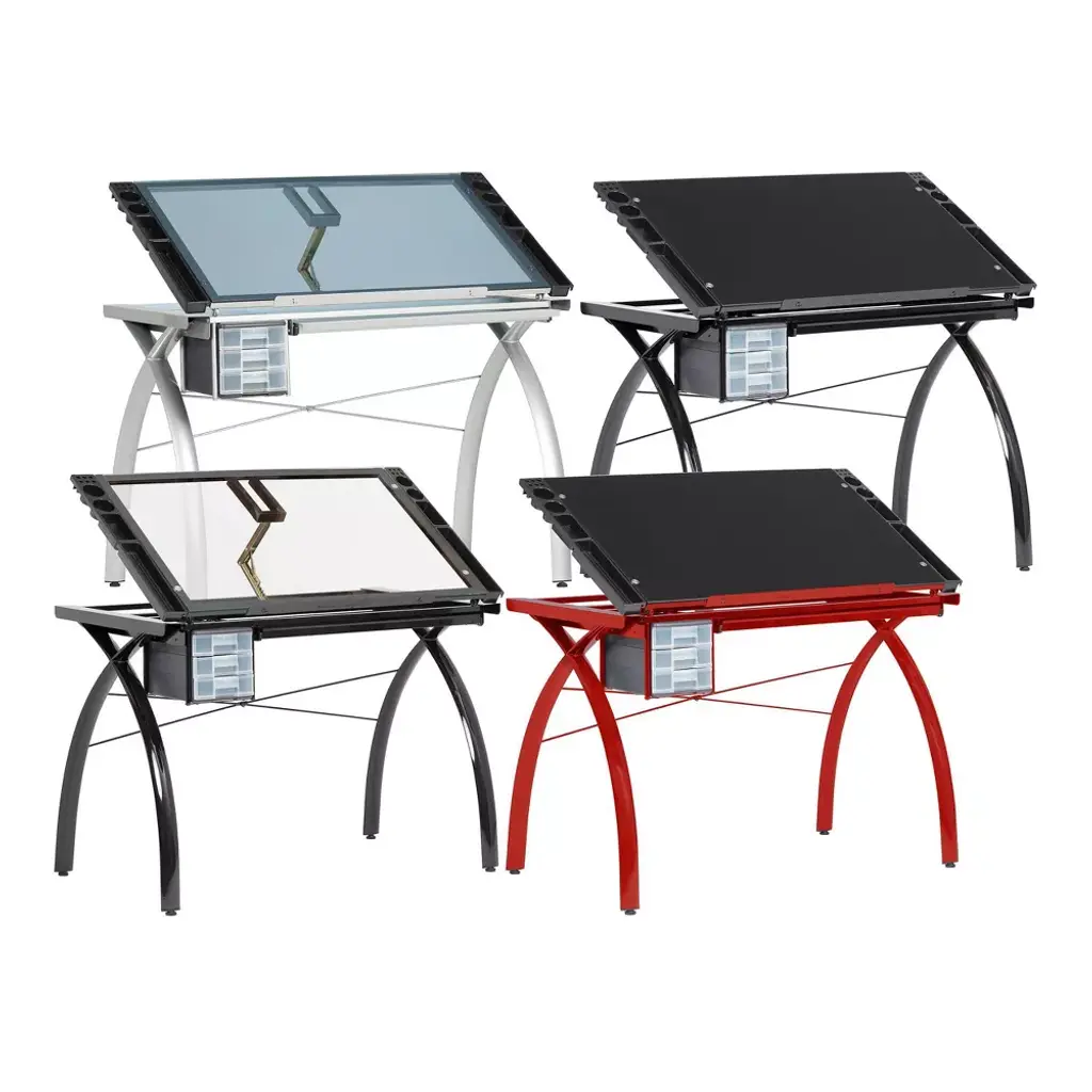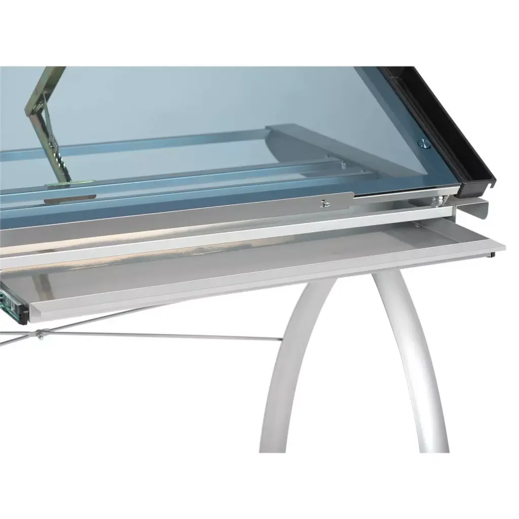Studio Designs Canvas & Color Adjustable Craft Station Silver/blue Glass: Modern Style, Powder-coated Steel Frame, 3 Drawers, Leveling Feet