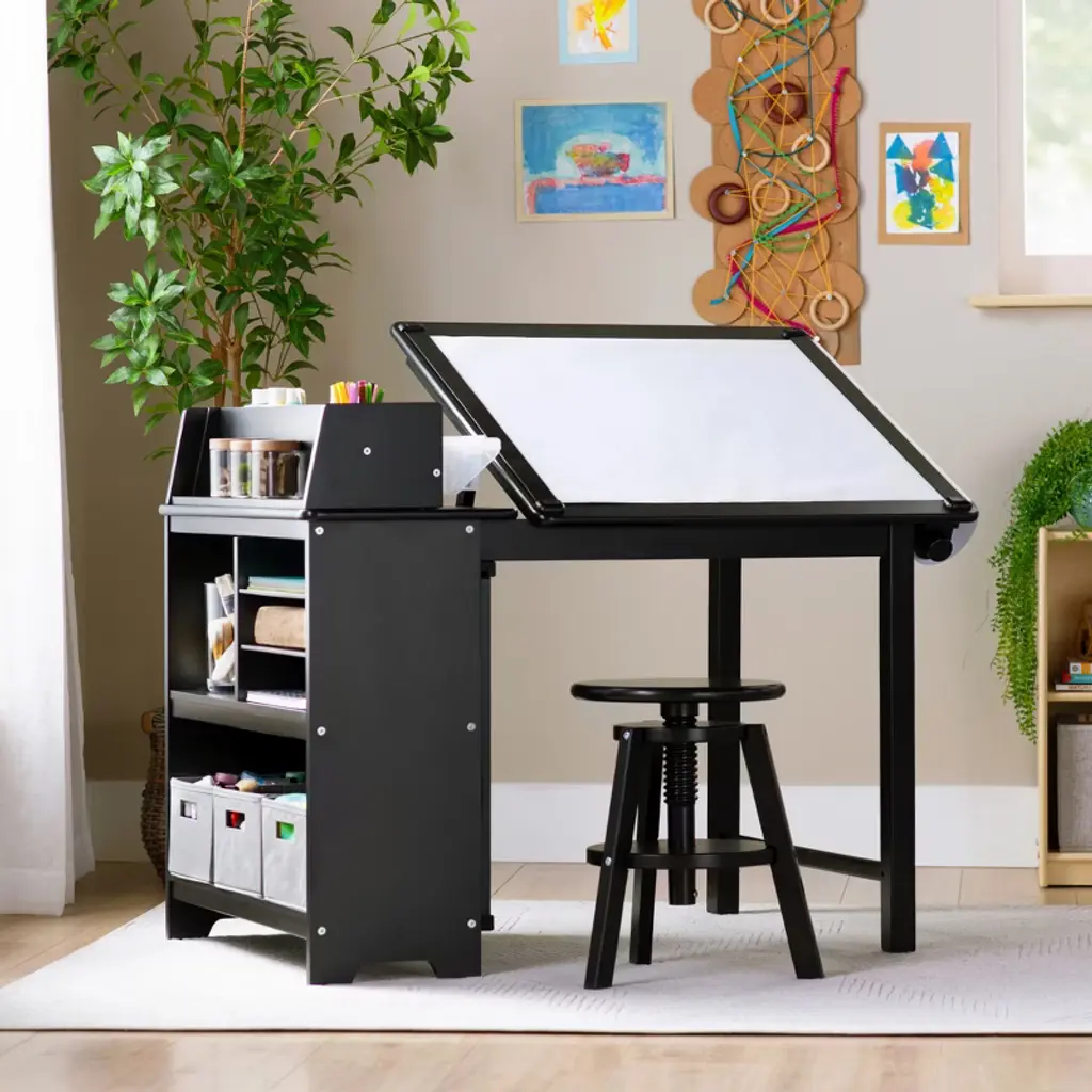 No matter what you're crafting up, let this Canvas & Color Adjustable Craft Station from Studio Designs meet your every creative need. The large work surface is great for drafting, drawing or crafting, and the table top adjusts so you get just the right angle. It features a large pencil drawer, side drawers to keep all of your supplies on hand and storage space at the top for quick access to the tools you use most. This craft desk will give you versatile use through all of your projects.