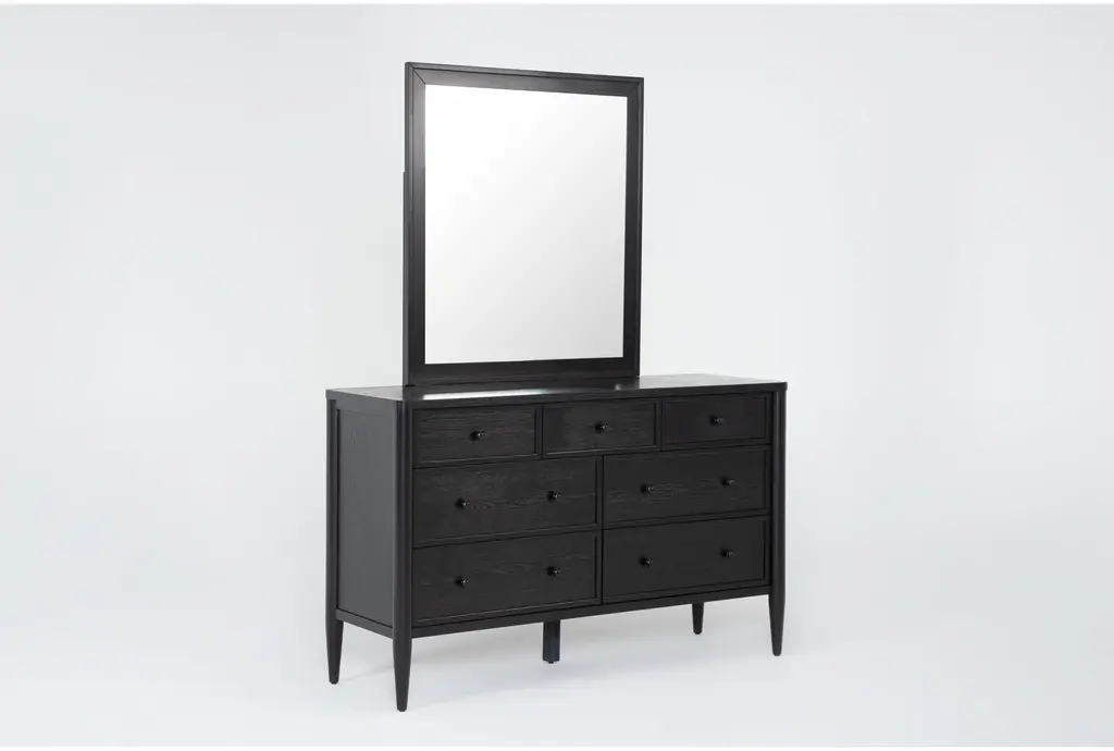 Austen Black Wood 7-Drawer Dresser With Mirror